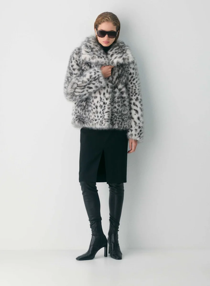Meticulously crafted to deliver warmth to -10°C / 14°F, this is a single-breasted coat with a waterfall collar and inseam pockets. It’s finely tailored with Alpine Faux Fur — ultra-plush faux snow leopard fur that looks and feels like the real thing. It’s lined with cupro for a clean, polished look and luxe silk-like feel.