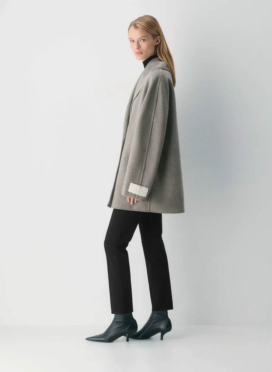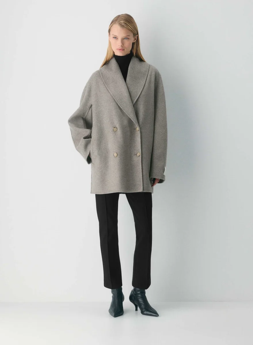 Shear brillianceMeticulously crafted to deliver warmth to 0°C / 32°F, this is a double-breasted coat with a shawl collar and relaxed fit. It’s expertly tailored with Luxe (Re)Wool — exceptionally soft and naturally warm fabric made with 98% recycled wool. It’s sourced from a premier Italian mill.This garment is crafted using double-faced construction, an elevated technique that joins two layers of fabric together to ensure both sides feel ultra luxurious. Next, the seams are meticulously finished by hand for a clean, refined look inside and out.The result is a luxe, unlined garment perfect for layering. Best face forward.