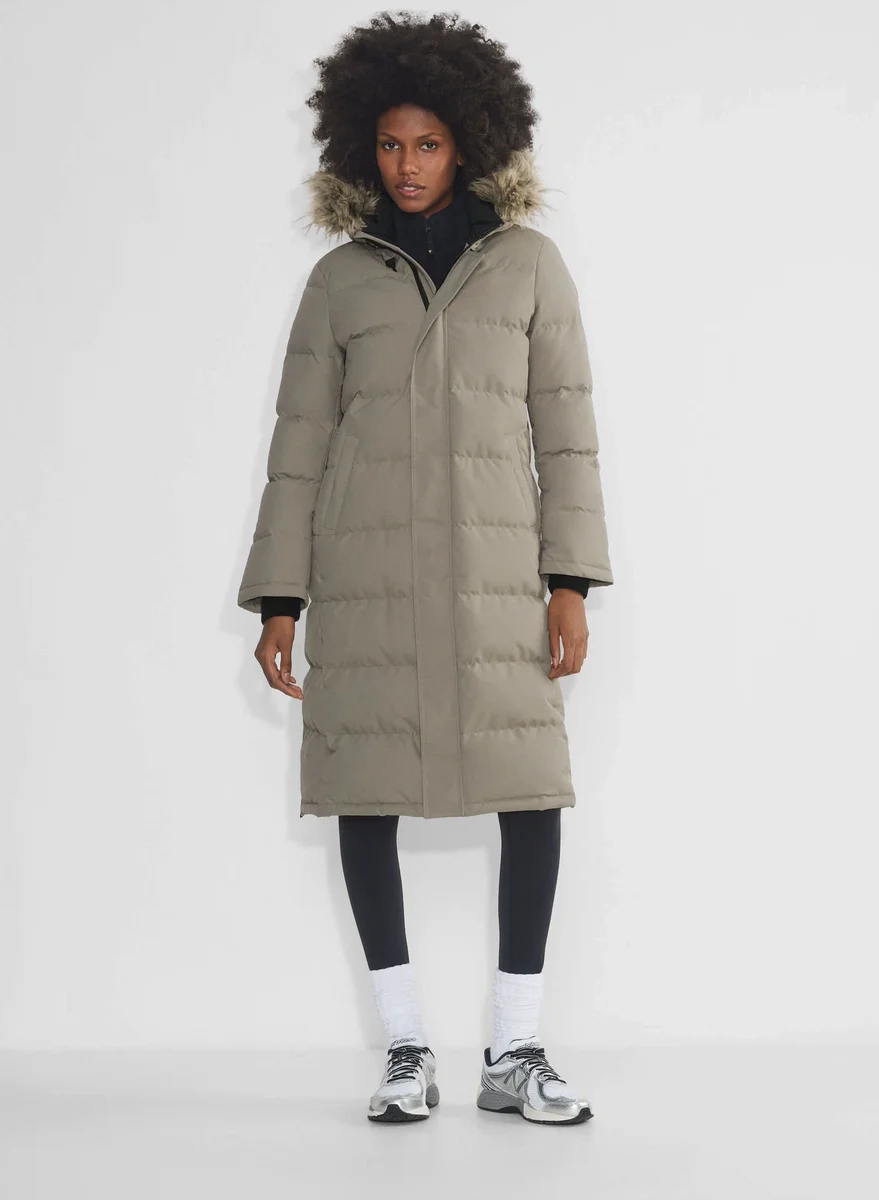Engineered to deliver warmth to -40°C / -40°F, this is a full-length parka with a classic silhouette and a hidden zip closure for a clean look. It has a cinchable shockcord hood with detachable Real Faux Fur trim to keep cold air out. It’s filled with 100% responsibly sourced, 700+ fill-power premium down that provides ultra-warm, lightweight insulation. This version is constructed with Coldstop™ — waterproof and windproof fabric with a soft structure, crisp feel and protective 2-layer construction.