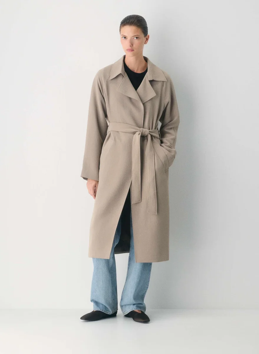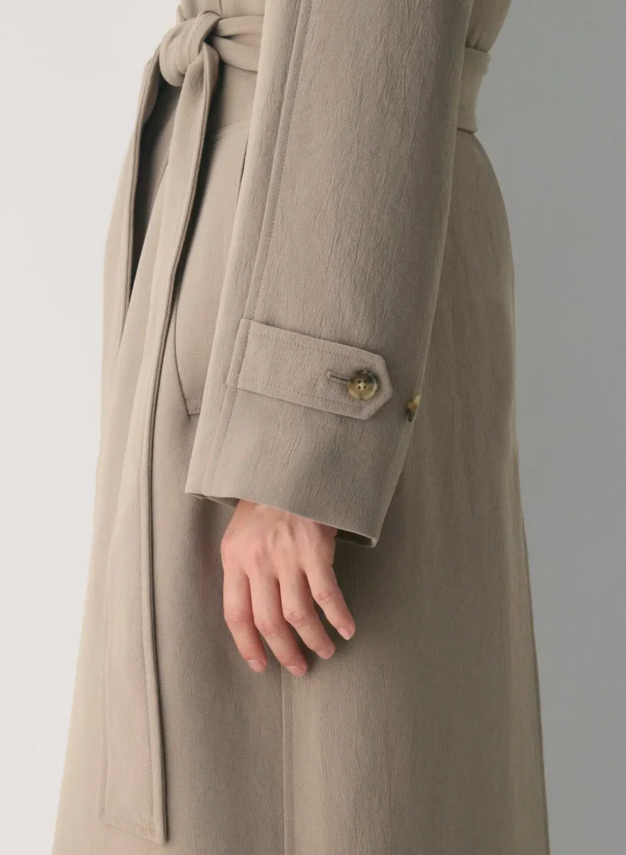 Meticulously crafted to deliver warmth to 0°C / 32°F, this is a drapey trench coat with a removable belt. It’s expertly tailored from Crepette™ — our one-of-a-kind Japanese crepe fabric beloved for its subtle texture, breezy drape and the fact that it basically never wrinkles.
