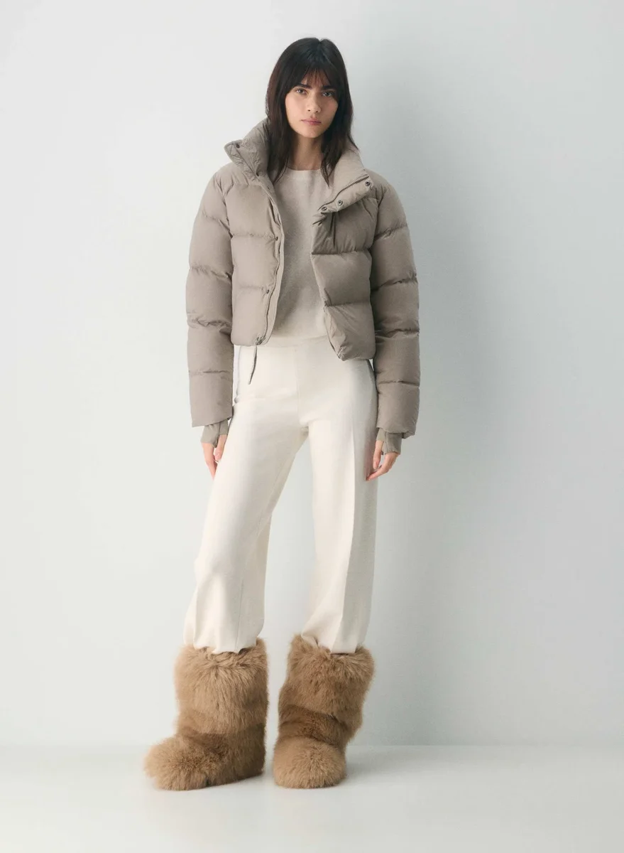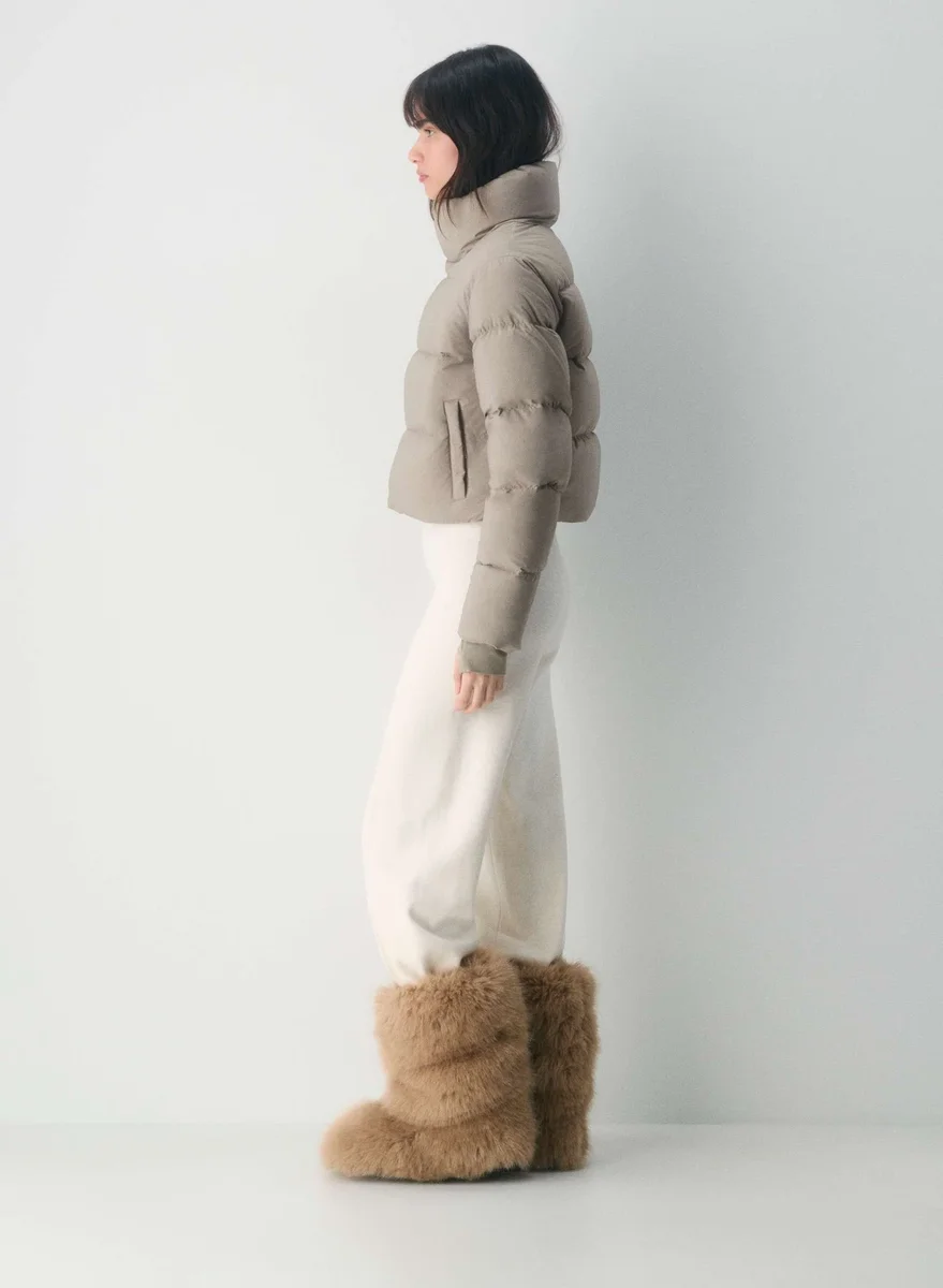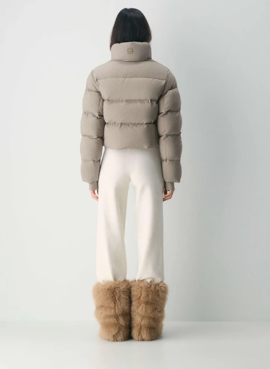 Engineered to deliver warmth to -10°C / 14°F, The Super Après Puff™ is designed with a flattering mockneck collar and maximalist proportions and will keep you super warm where it counts. It’s filled with 100% responsibly sourced, 800+ fill-power premium down that provides ultra-warm, lightweight insulation. It’s constructed with cliMATTE™ — water-repellent and wind-resistant ripstop fabric with a matte finish and a soft feel. It’s sourced from a Japanese mill that specializes in performance fabrics.