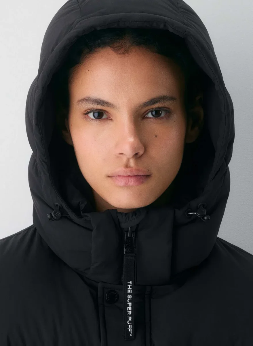 Engineered to deliver warmth to -30°C / -22° F, The Super Puff™ is designed with maximalist proportions and will keep you super warm where it counts. It’s filled with 100% responsibly sourced, 800+ fill-power premium down that provides ultra-warm, lightweight insulation. It’s made with cliMATTE™ — water-repellent and wind-resistant ripstop fabric with a matte finish and a soft feel. It’s sourced from a Japanese mill that specializes in performance fabrics.