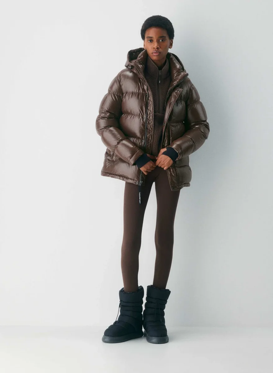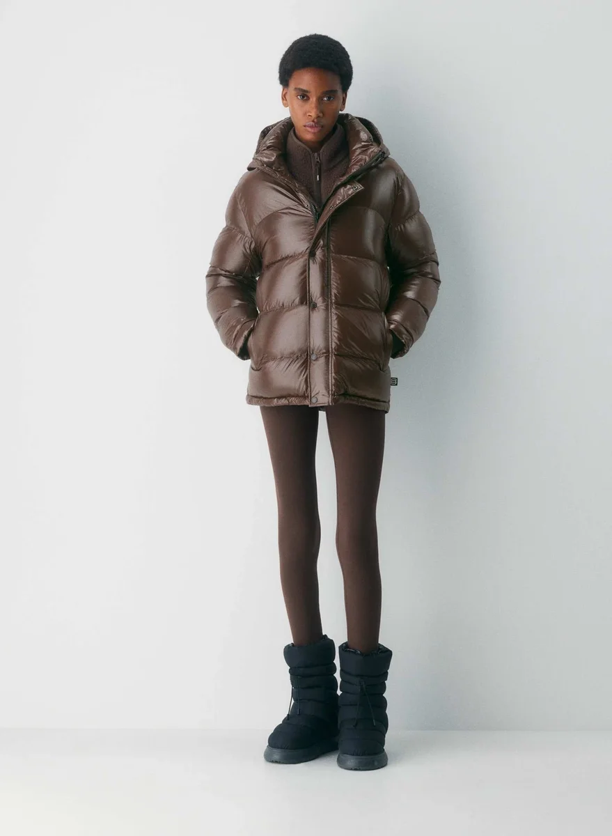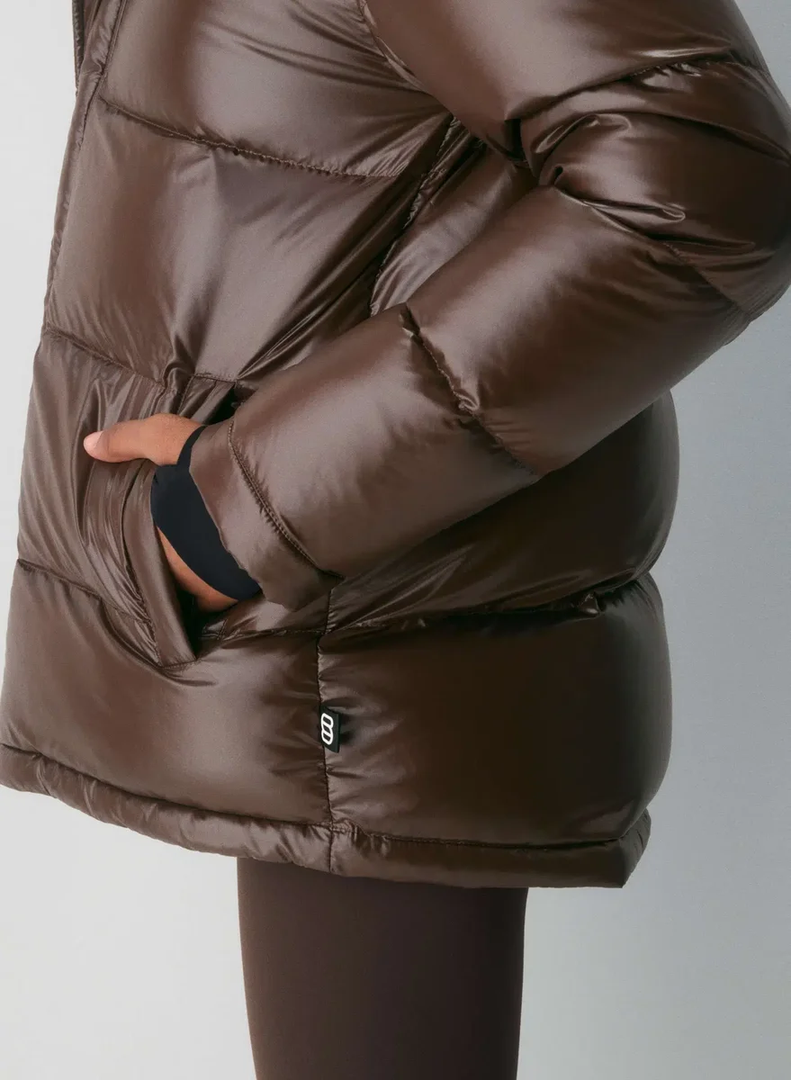 Engineered to deliver warmth to -30°C / -22°F, This Super Puff™ features a cinchable weather-shield hood, a Cozy Collar™ and will keep you super warm where it counts. It’s filled with 100% responsibly sourced, 800+ fill-power premium down that provides ultra-warm, lightweight insulation. This version is constructed with Hi-Gloss — water-repellent and wind-resistant taffeta from France with a glossy finish and a soft feel.