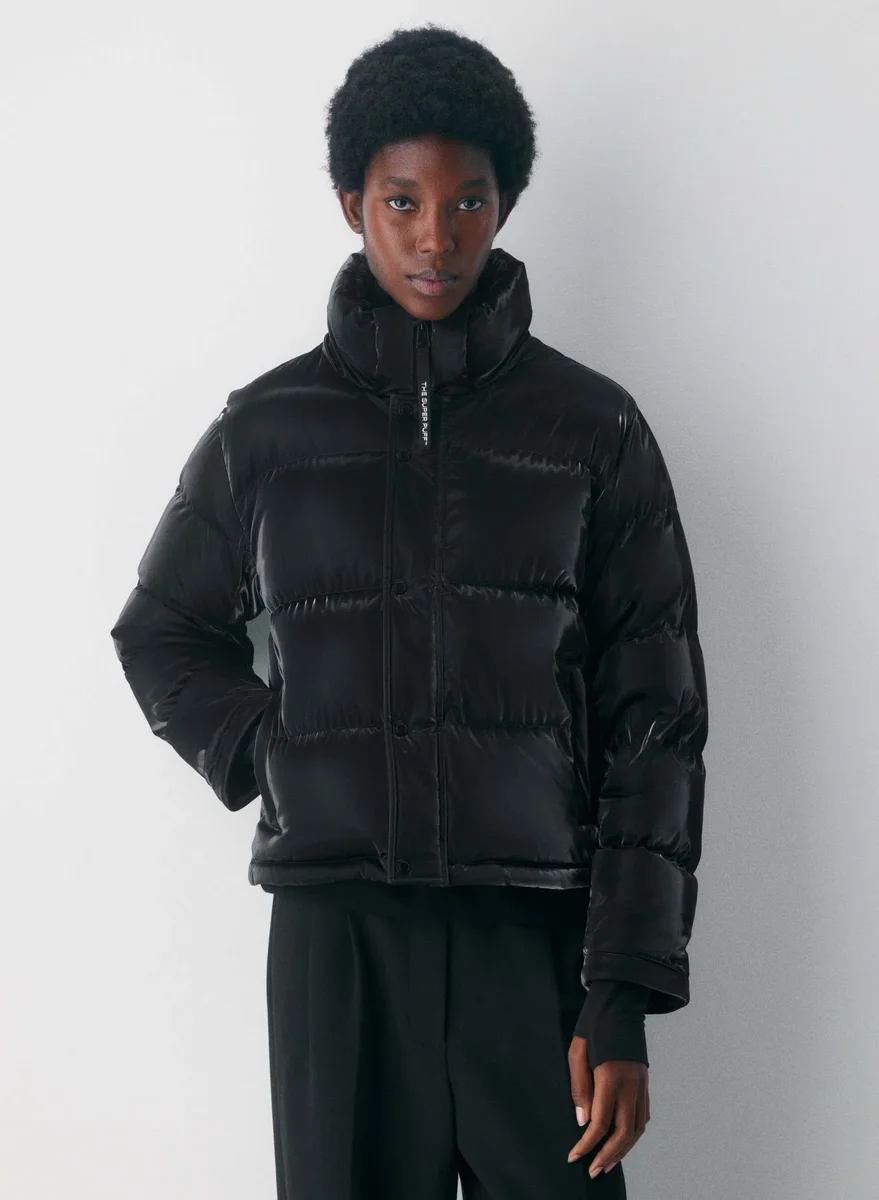 Liquid Shine premium down cropped puffer jacket