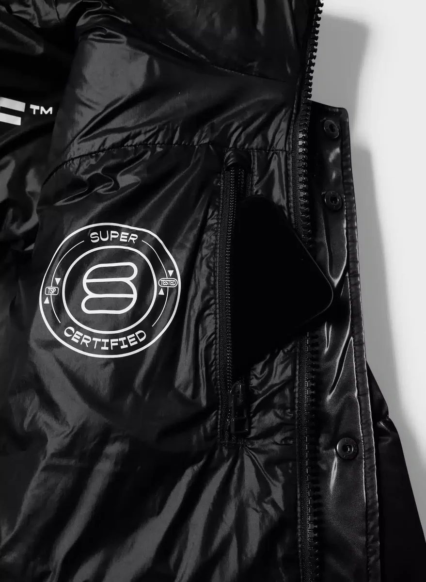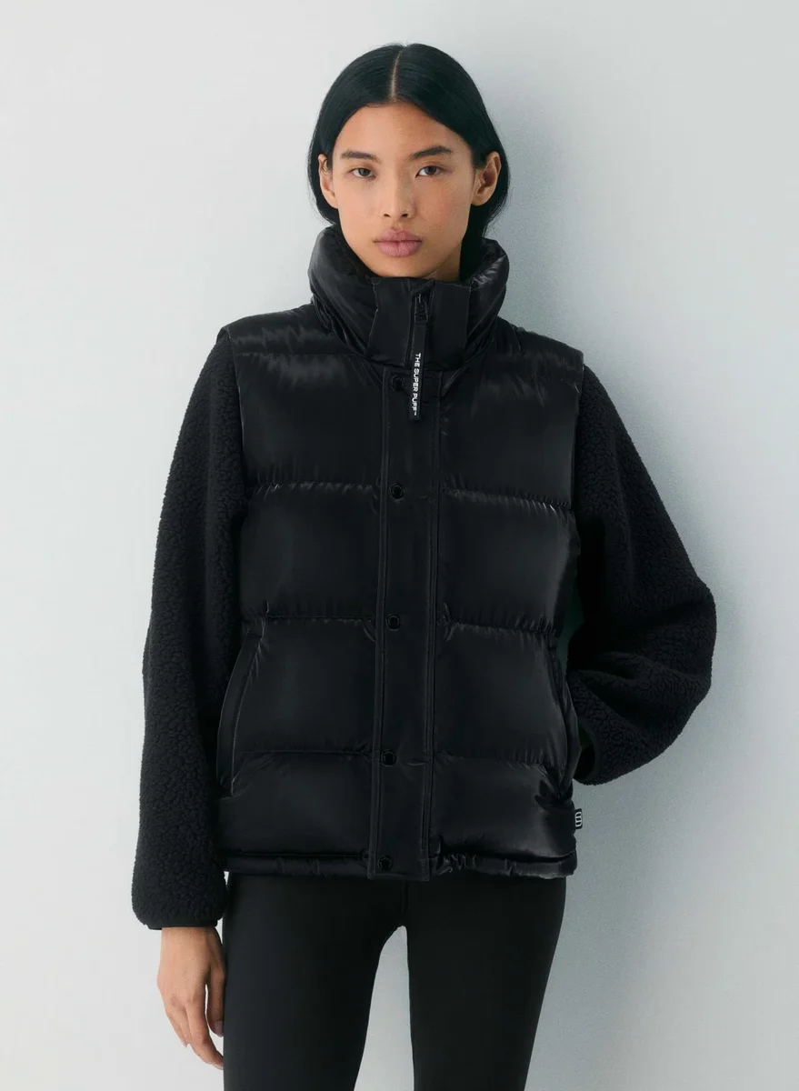 Designed with maximalist proportions, The Super Puff™ Vest will keep you super warm where it counts. It’s filled with 100% responsibly sourced, 800+ fill-power premium down that provides ultra-warm, lightweight insulation. It’s made with Liquid Shine — water-resistant, windproof stretch fabric with a velvety look and a sleek feel.