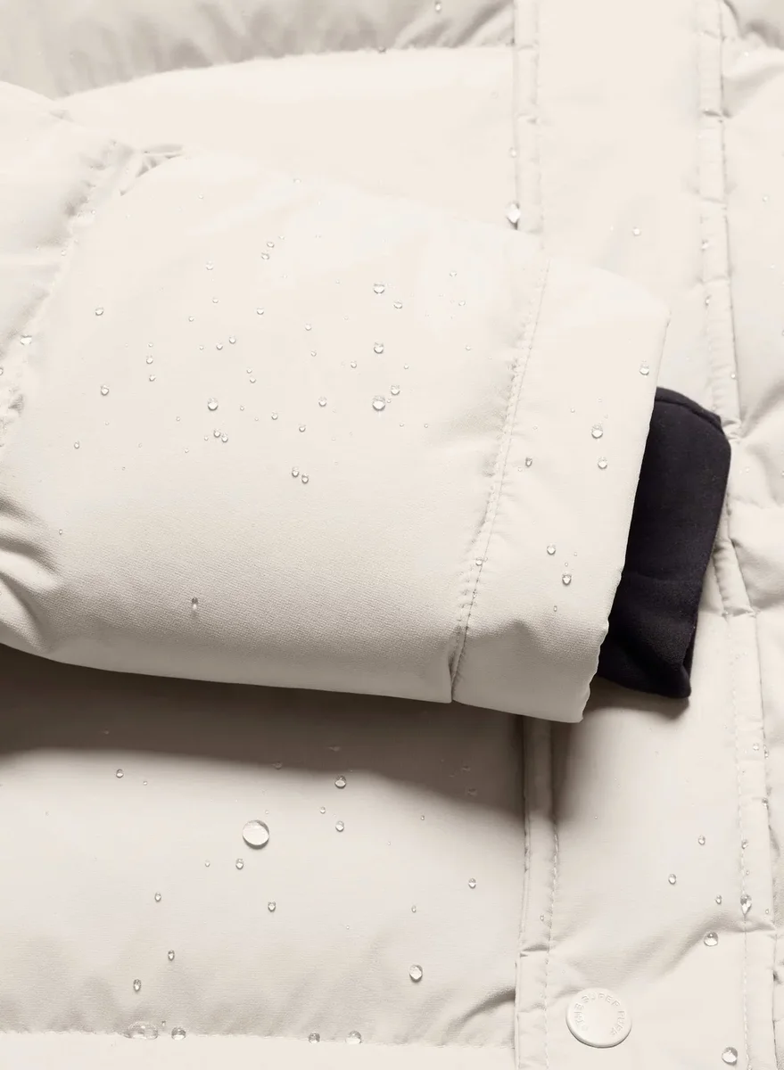 Yes, it’s even shorter than the Shorty. Introducing The Super Puff™ XtraShorty — the shortest member of The Super Puff™ family. Engineered to deliver warmth to -10°C / 14°F, XtraShorty will keep you super warm where it counts. It’s filled with 100% responsibly sourced, 800+ fill-power premium down that provides ultra-warm, lightweight insulation. It’s constructed with cliMATTE™ — water-repellent and wind-resistant ripstop fabric with a matte finish and a soft feel. It’s sourced from a Japanese mill that specializes in performance fabrics.