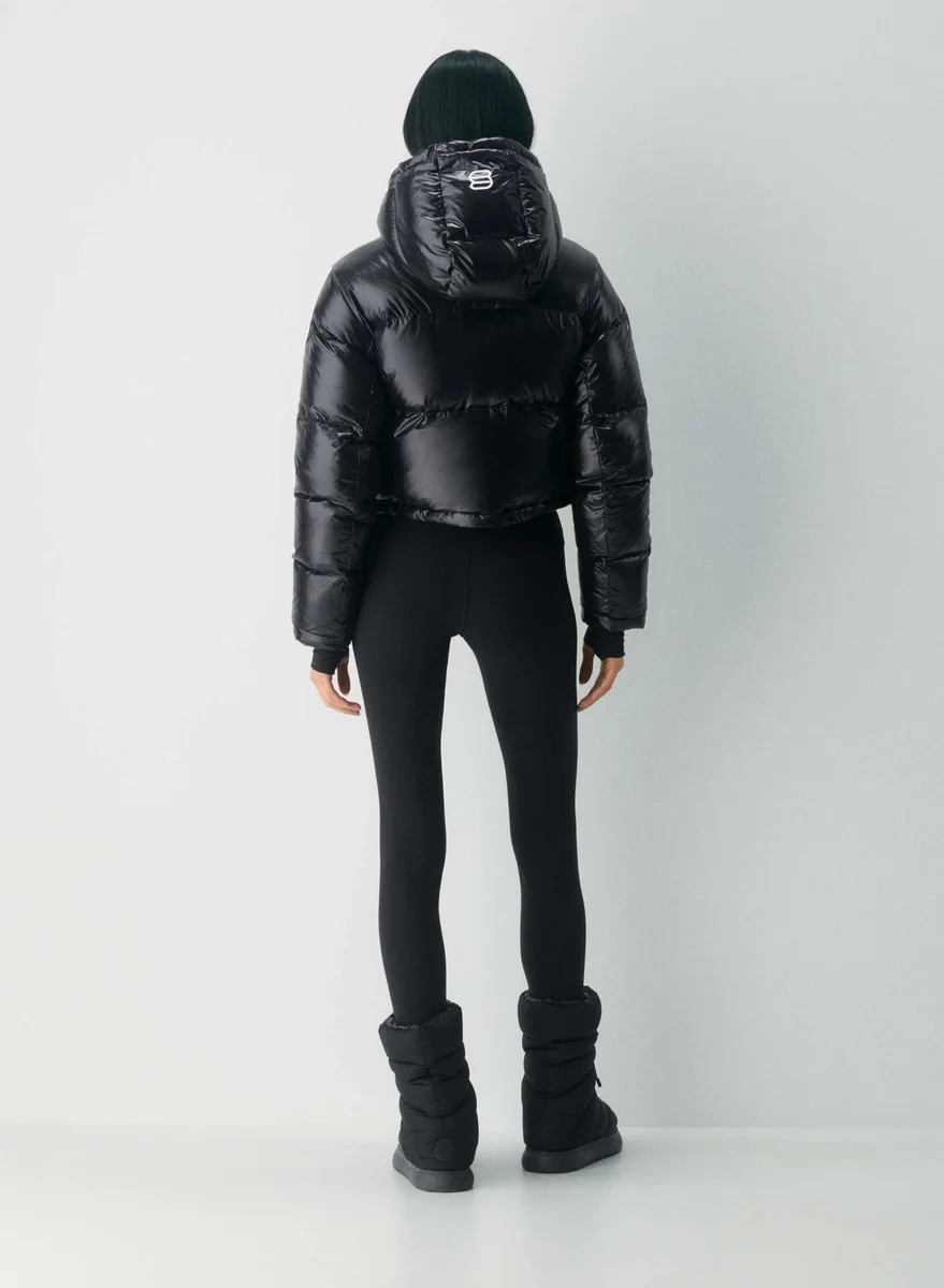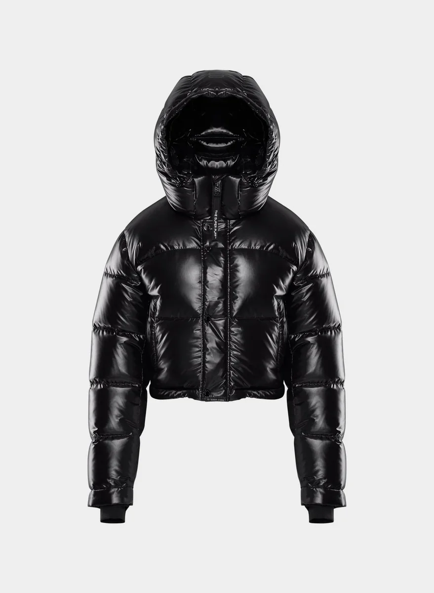 Hi-Gloss French taffeta cropped premium down puffer jacket