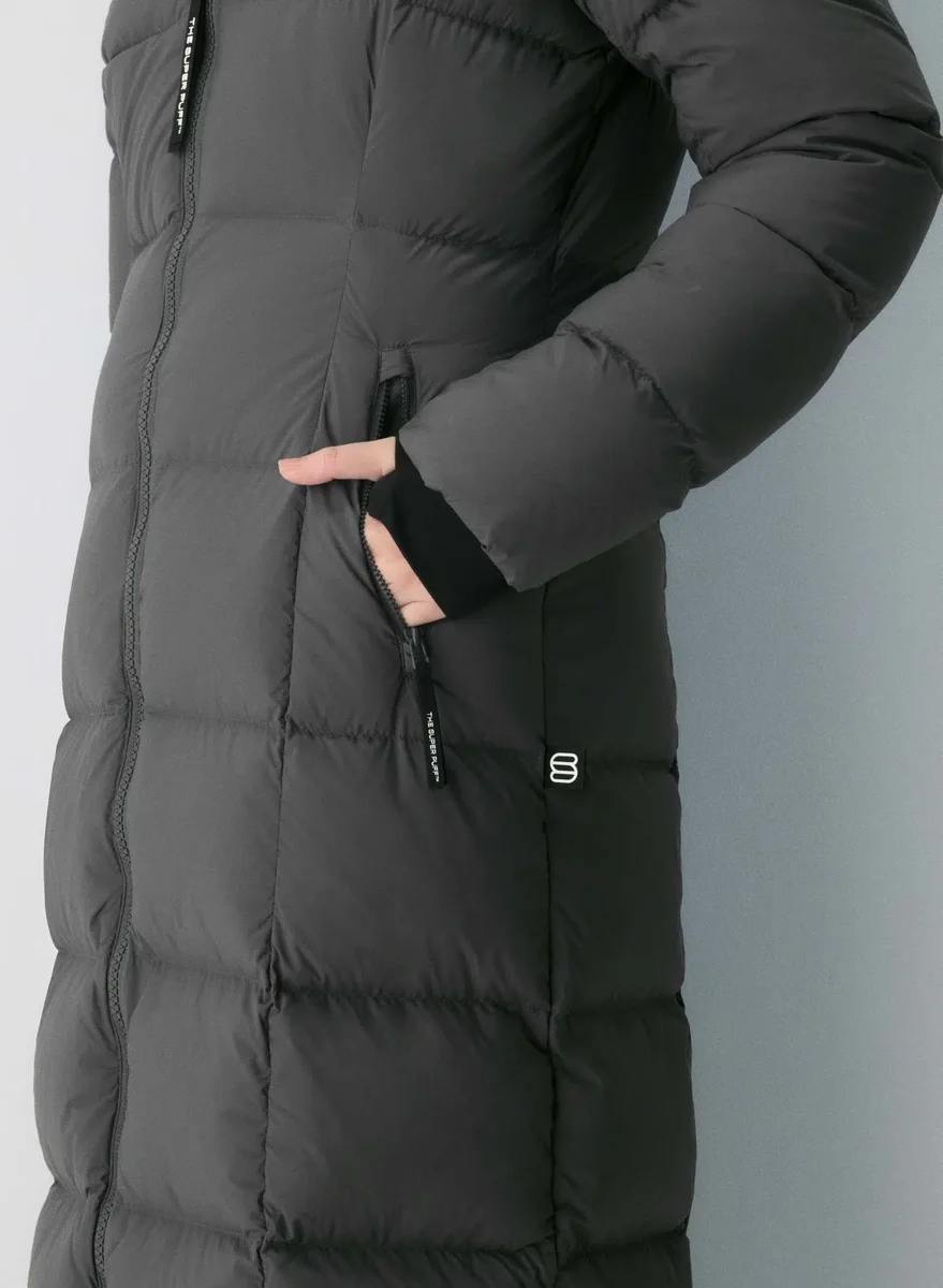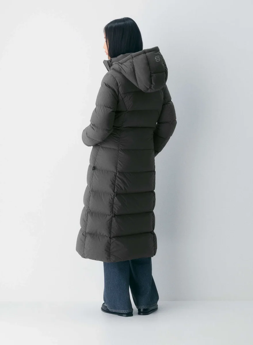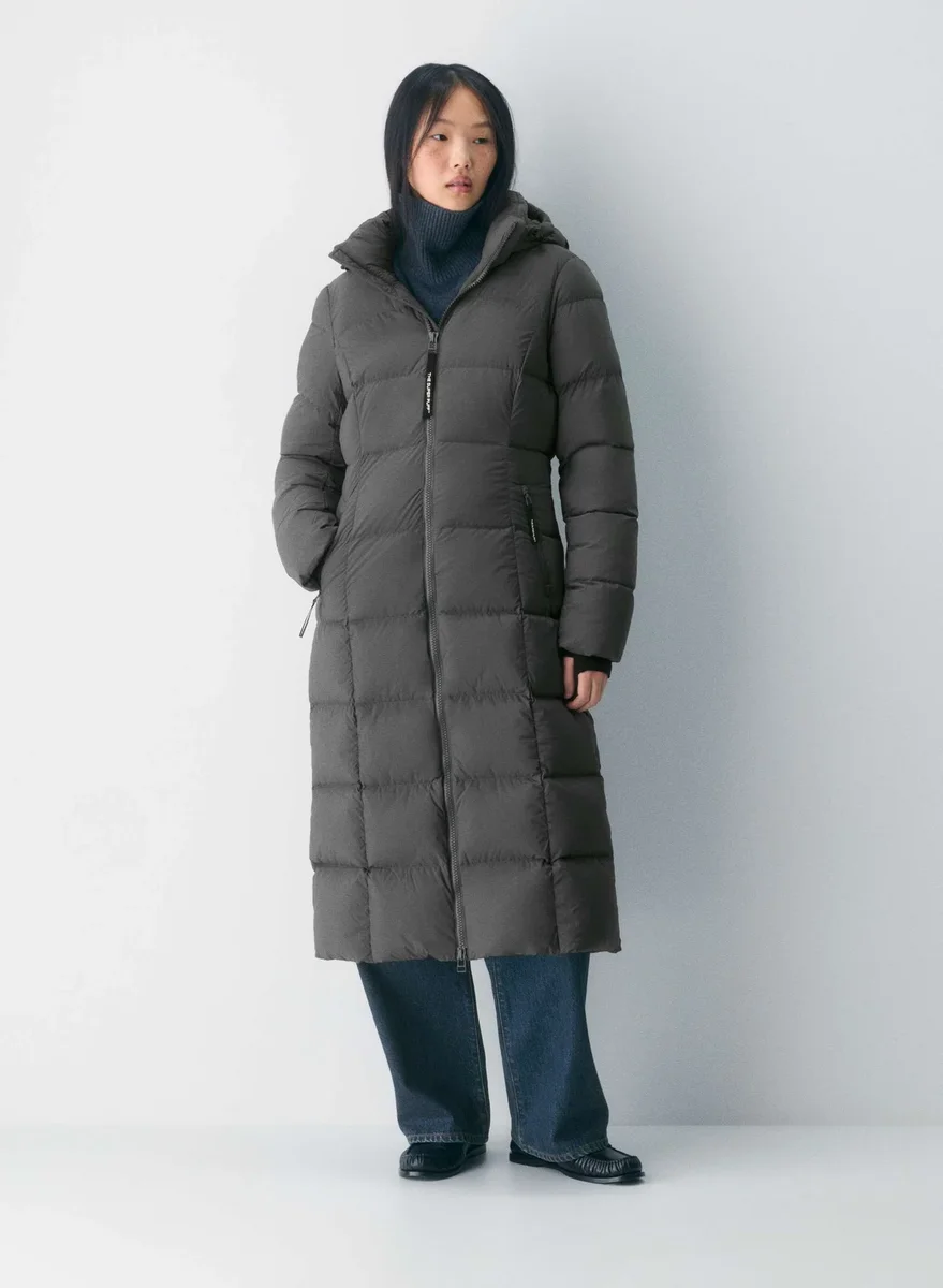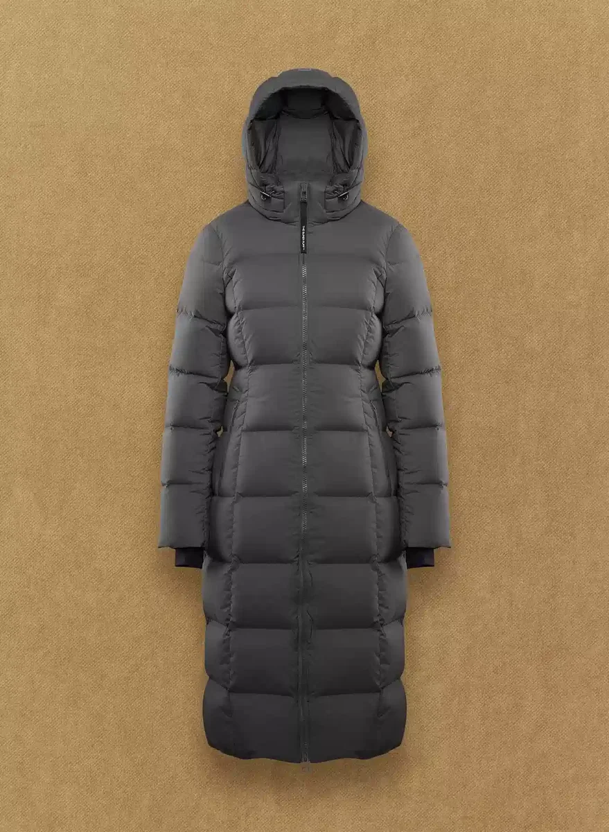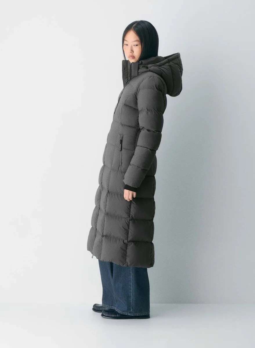 Engineered to deliver warmth to -40°C / -40°F, this is a long hourglass puffer with a slim silhouette that hugs the body. It’s filled with 100% responsibly sourced, 700+ fill-power premium down that provides ultra-warm and lightweight insulation. It’s made with cliMATTE™ — water-repellent and wind-resistant ripstop fabric with a matte finish and a soft feel. This fabric is sourced from a Japanese mill that specializes in performance fabrics.