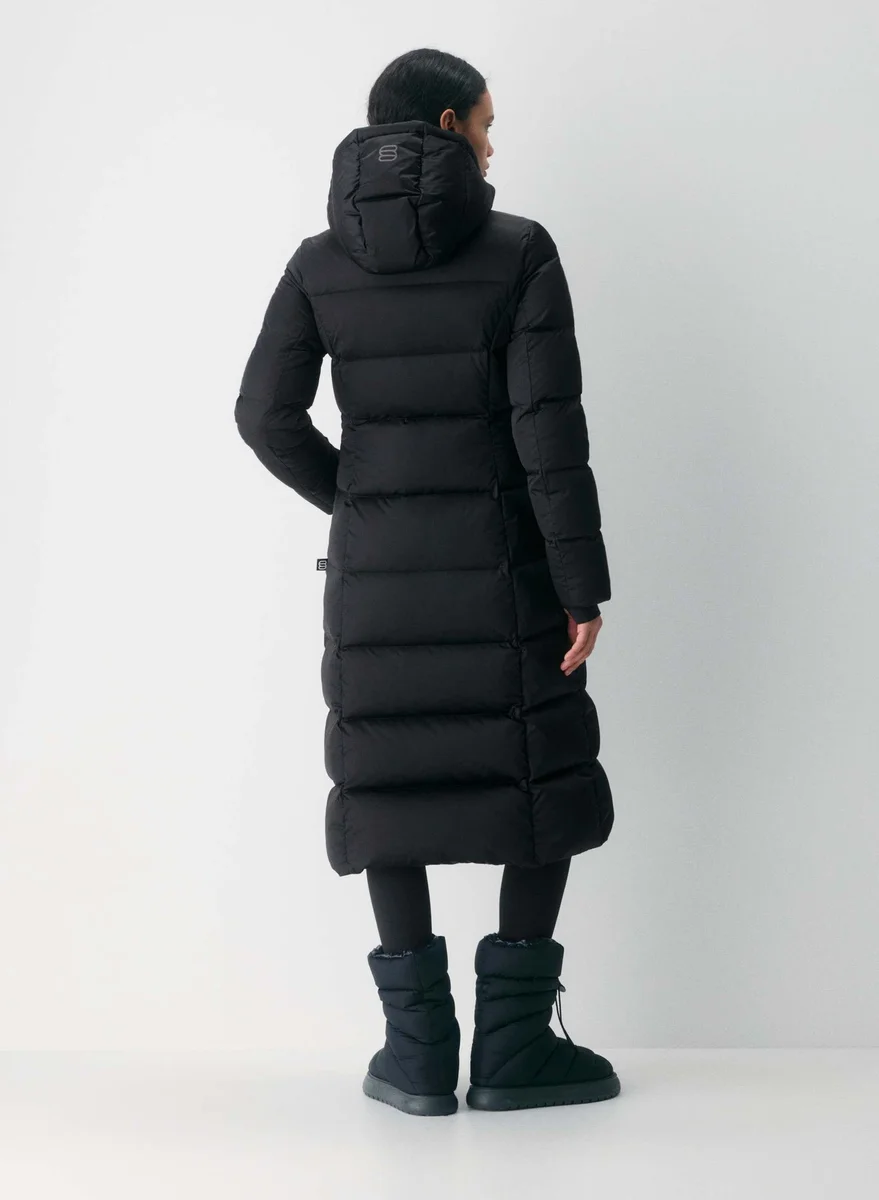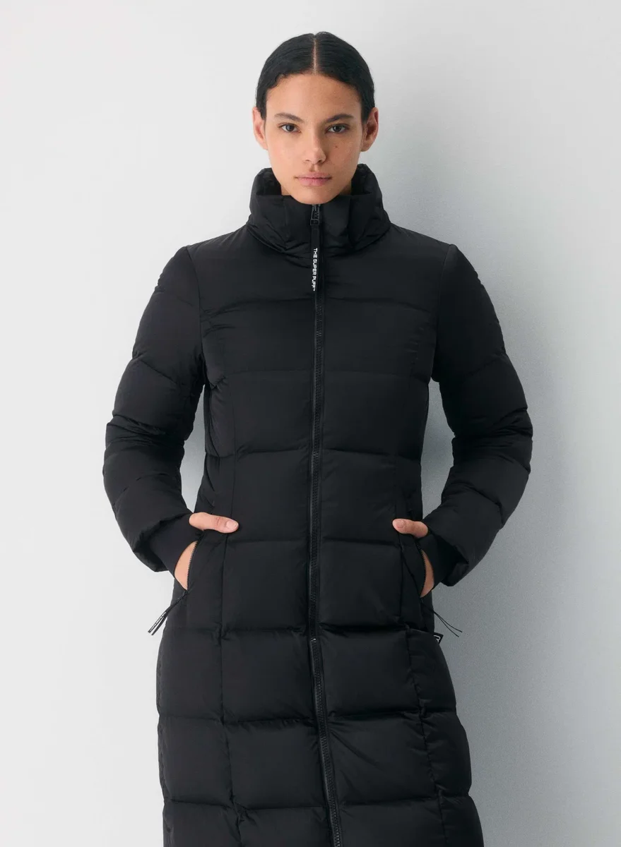Engineered to deliver warmth to -40°C / -40°F, The SuperSnug Puff™ Long is an hourglass puffer with a slim fit that hugs your body. It’s filled with 100% responsibly sourced, 700+ fill-power premium down that provides ultra-warm, lightweight insulation. It’s constructed with Satin Flex™ — water repellent stretch fabric with a pearlescent sheen and a soft, silky feel. This fabric is sourced from a Japanese mill that specializes in performance fabrics.