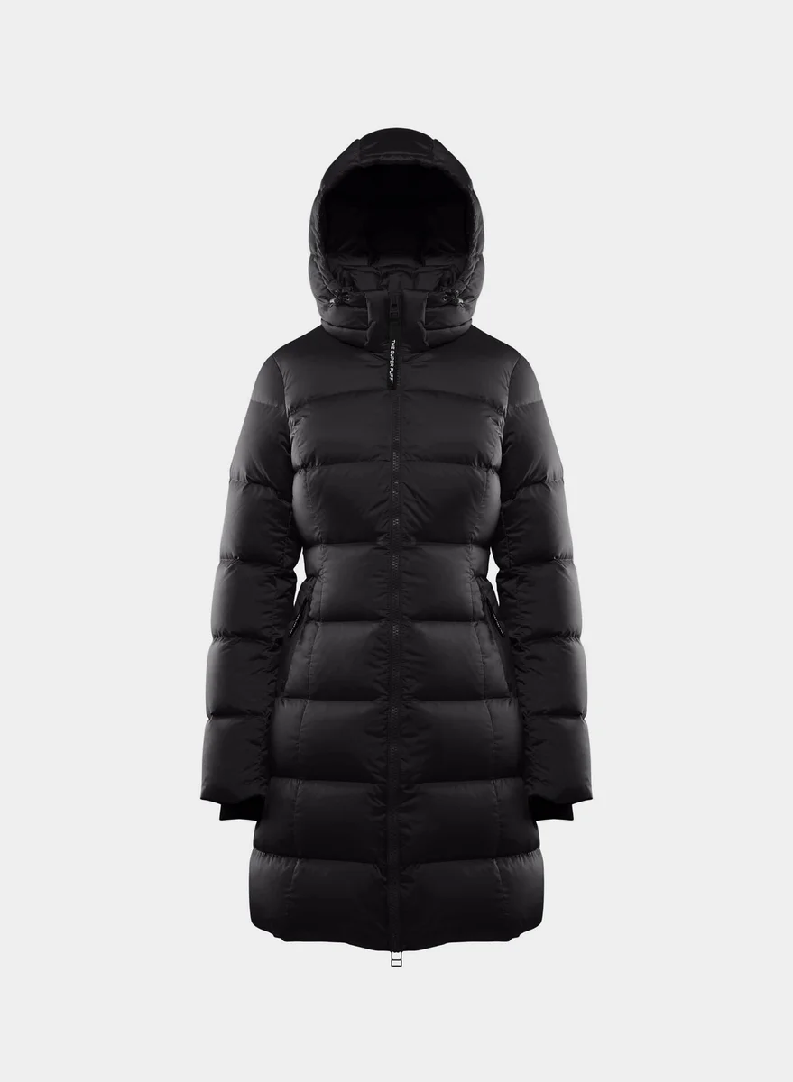 Satin Flex™ Japanese water-repellent satin premium down hourglass puffer jacket