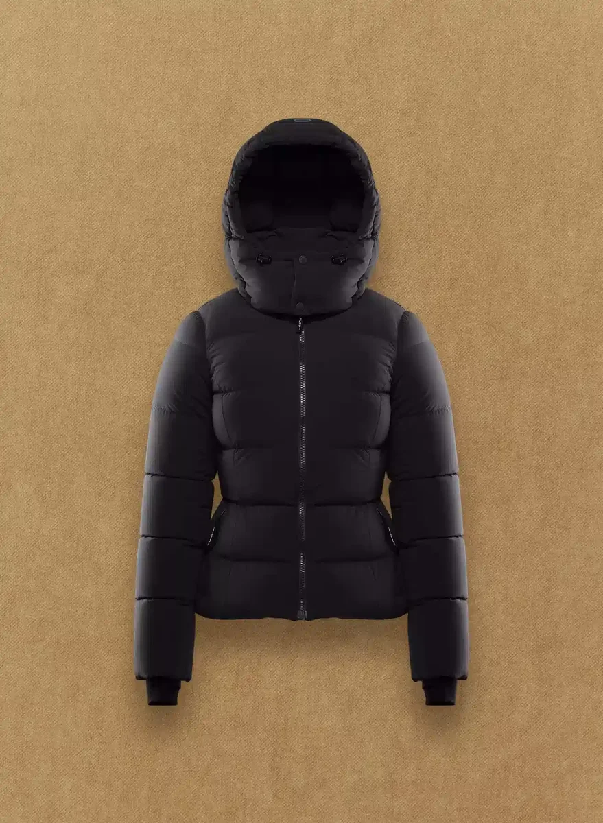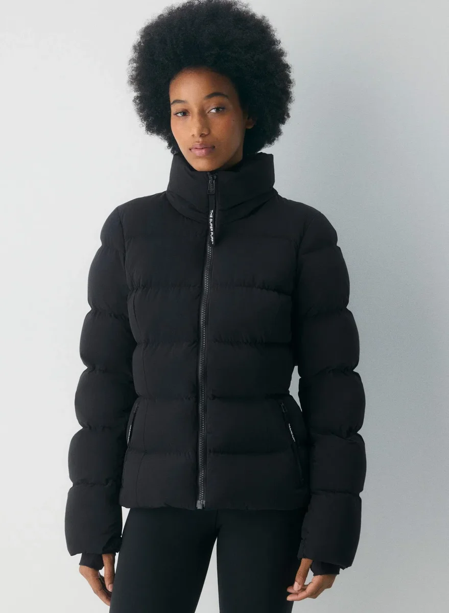 Comfort-stretch premium down hourglass puffer jacket