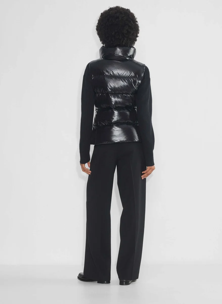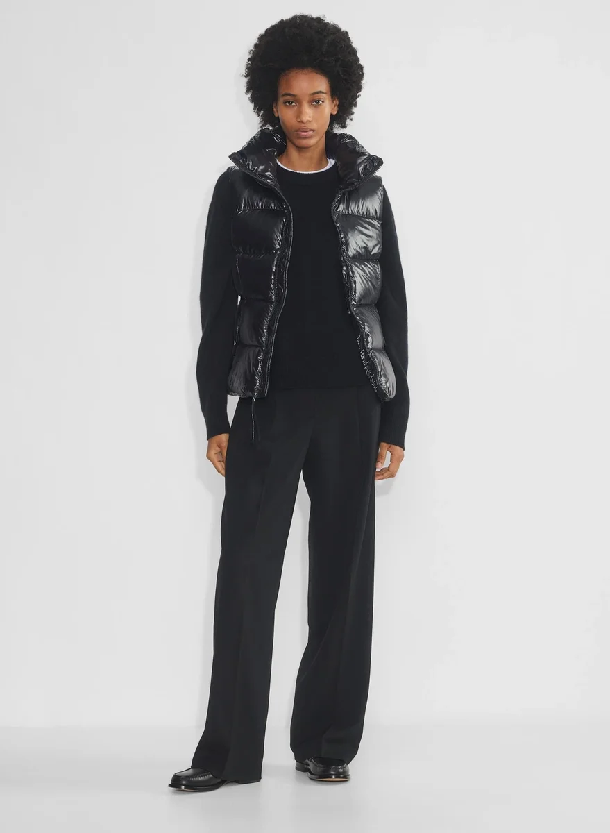 Slim-fit hourglass premium down puffer vest made with Hi-Gloss fabric from France