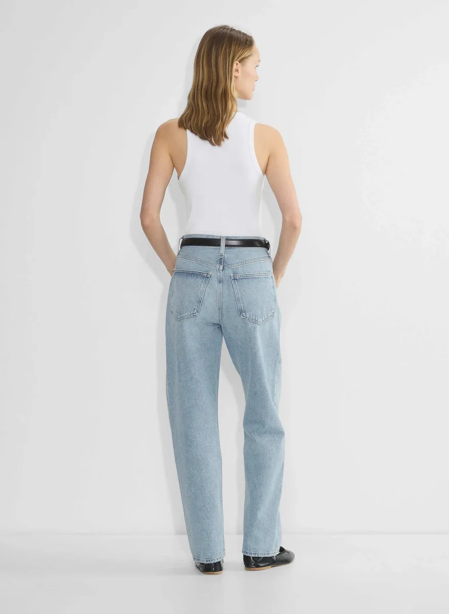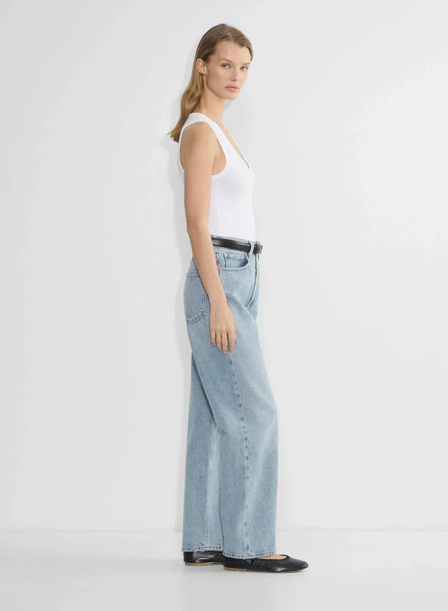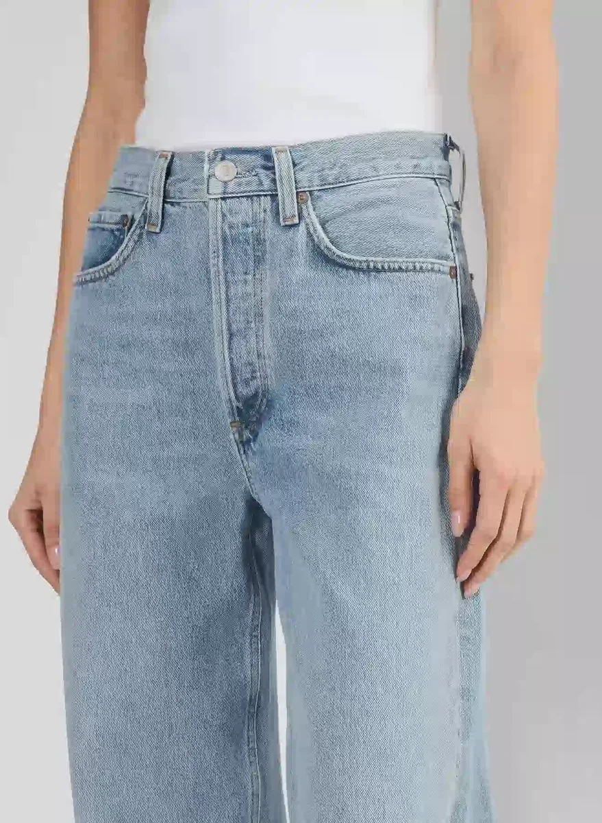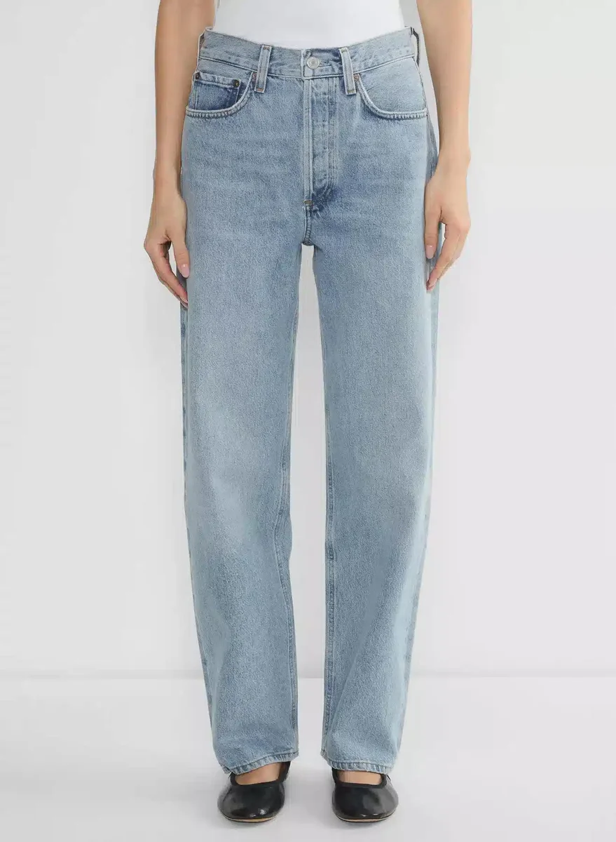If you’re looking for some spaceThese are mid-rise jeans with a relaxed leg and a subtle, soft taper for a comfortable yet stylish fit. They’re cut from rigid, non-stretch regenerative cotton with a soft hand feel. This version comes in an indigo wash with fading and whiskering.