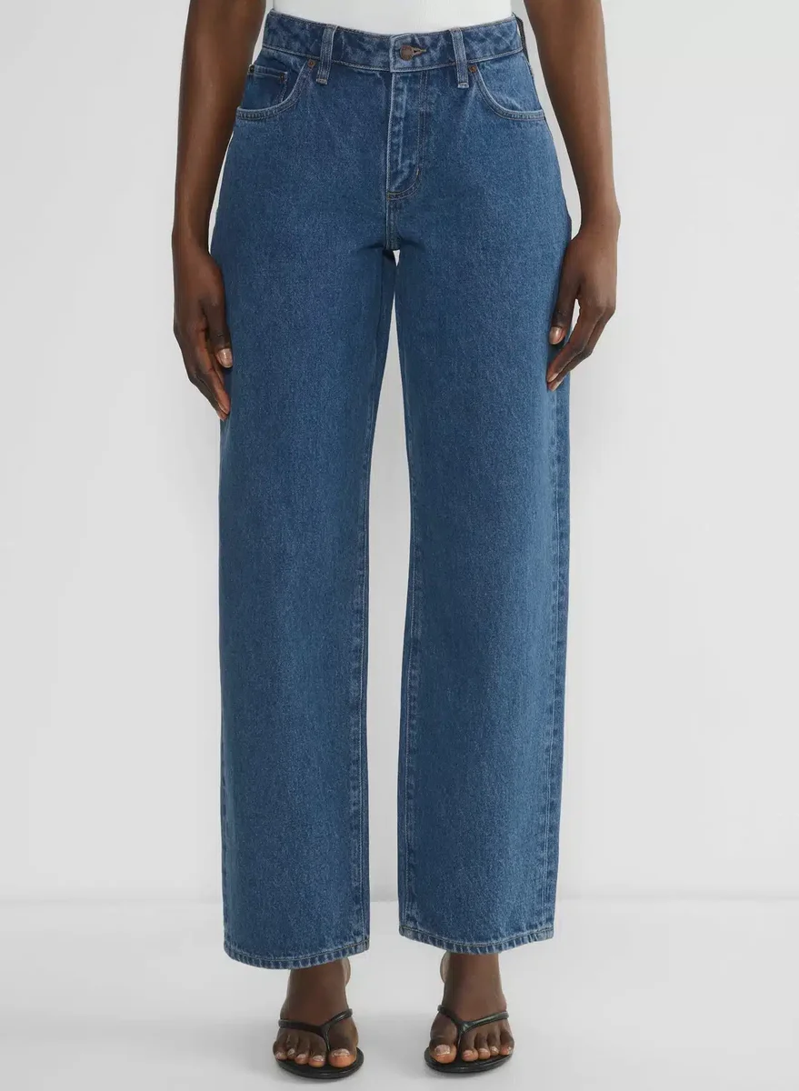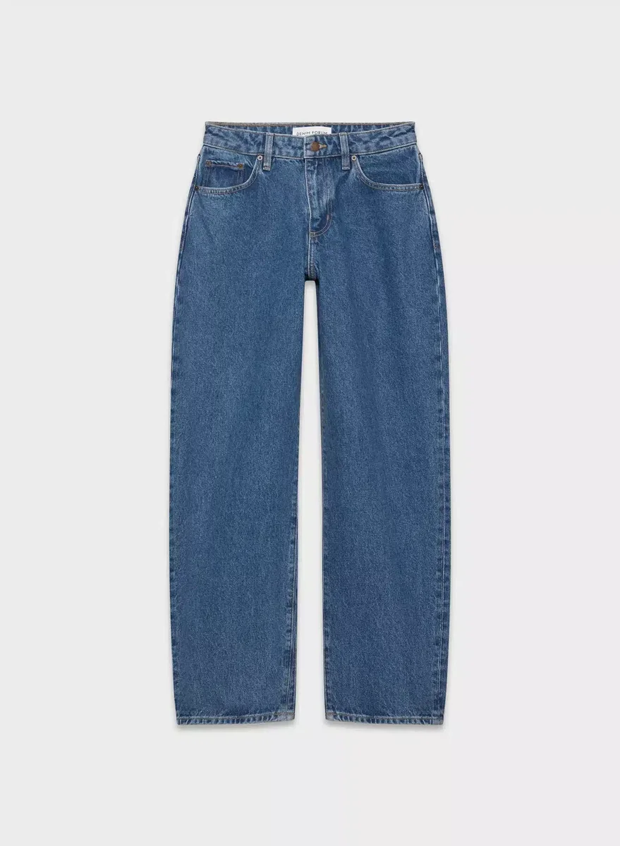 These are baggy mid-rise jeans with a barrel leg and a curvy, relaxed fit. They’re cut from heavyweight non-stretch 100% cotton denim that molds to your body over time. This version comes in a medium blue wash with a clean hem.