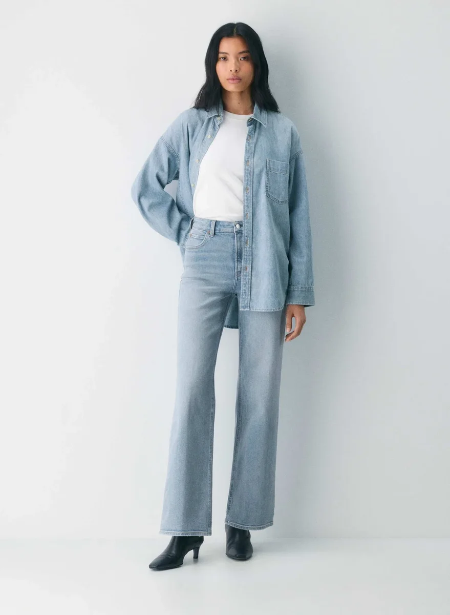 A waist-defining take on an era-defining jean, The ’90s Snatched features a high rise, wide leg and darted waist for shaping. They’re cut from soft, midweight denim with a hint of stretch for all-day comfort. This denim is sourced from a premier Italian mill and made with 96% regenagri-certified regenerative cotton. This version comes in a light-medium indigo wash and a clean hem.