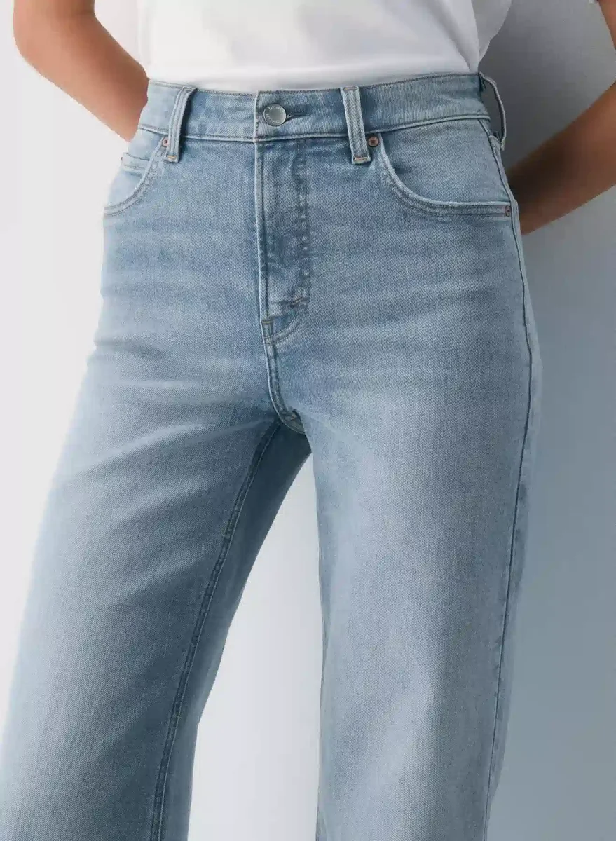 Comfort-stretch high-rise, wide-leg contouring jeans