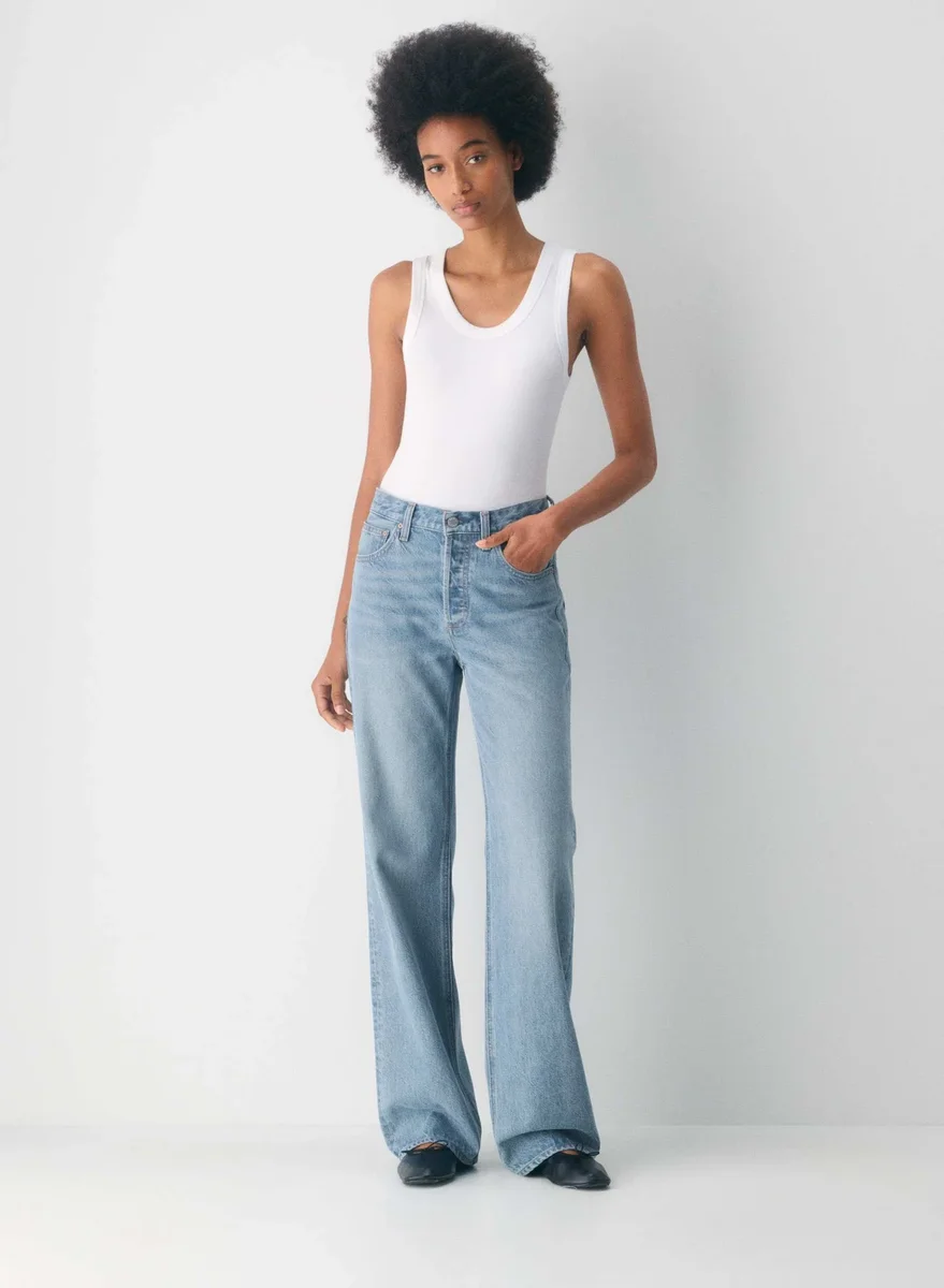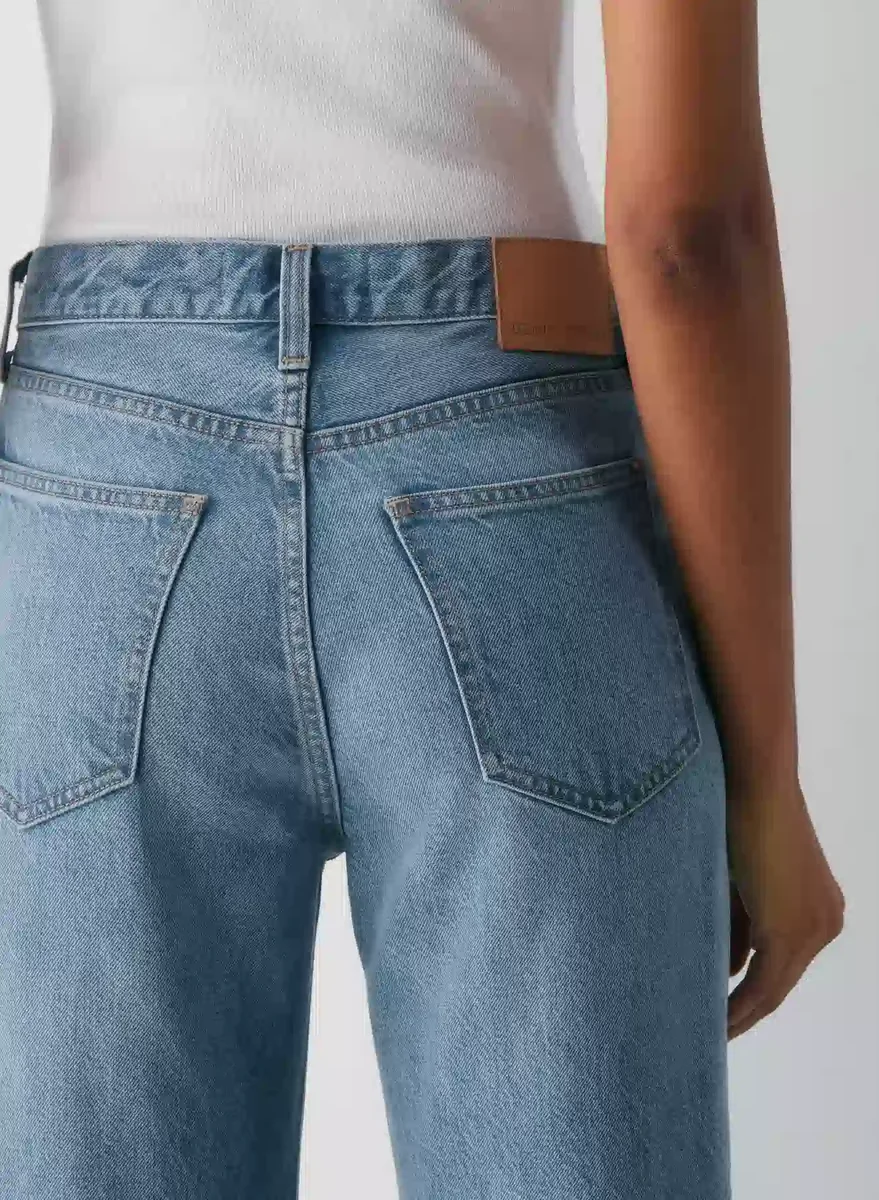 Inspired by iconic ’90s style, these are wide-leg jeans with a mid rise and classic fit. They’re cut from lightweight and drapey non-stretch denim with a soft feel. This version comes in a light medium indigo wash.