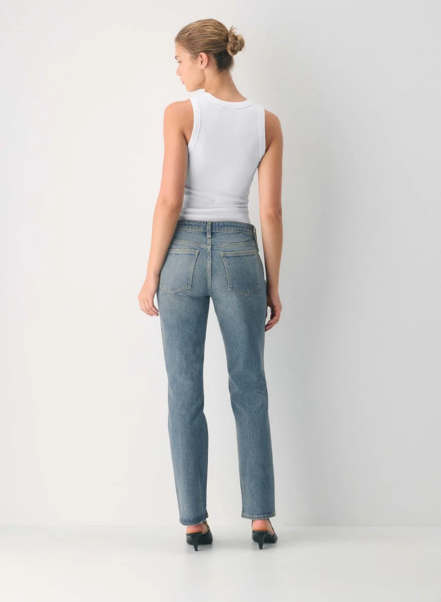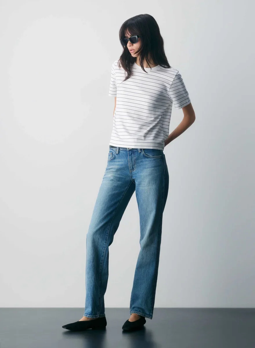 These are low-rise jeans with a straight leg and classic fit. They’re crafted with heavyweight denim with a hint of stretch for all-day comfort. This version comes in a vintage medium blue wash.