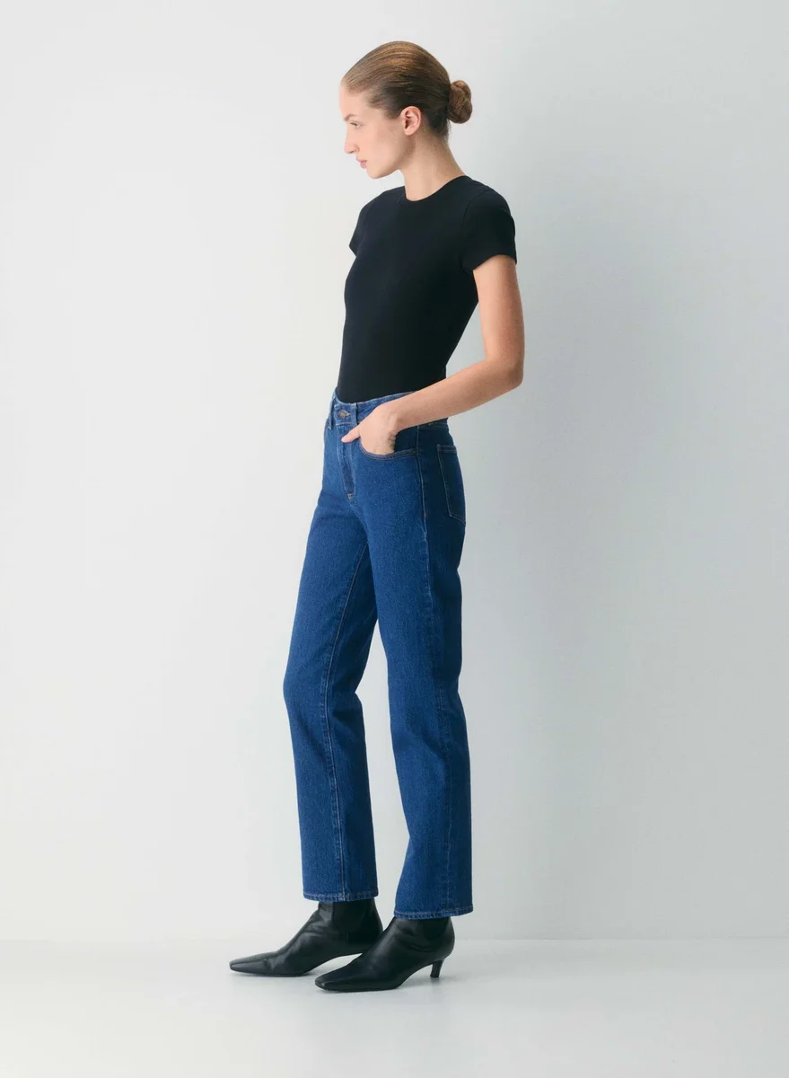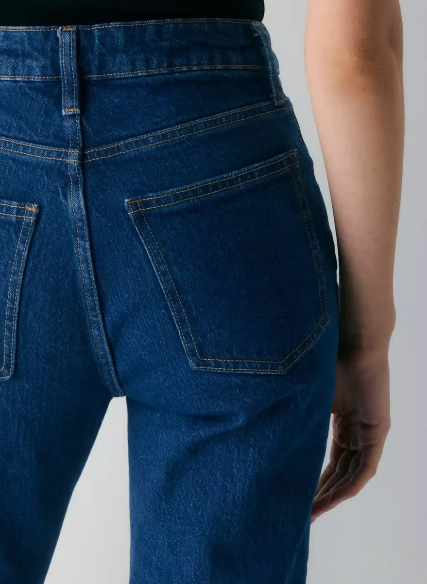 These are high-rise jeans with a straight leg and a classic fit. They’re cut from heavyweight denim with a hint of stretch for all-day comfort.