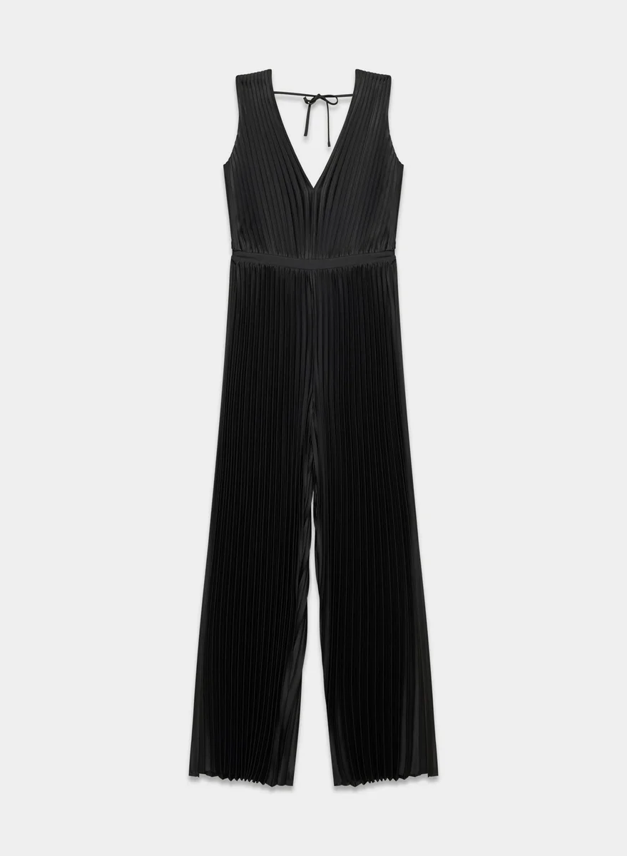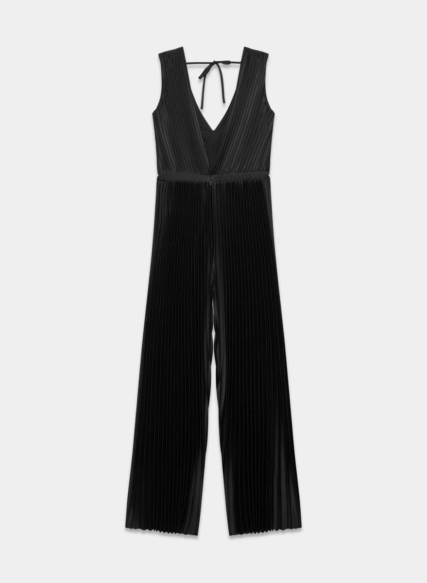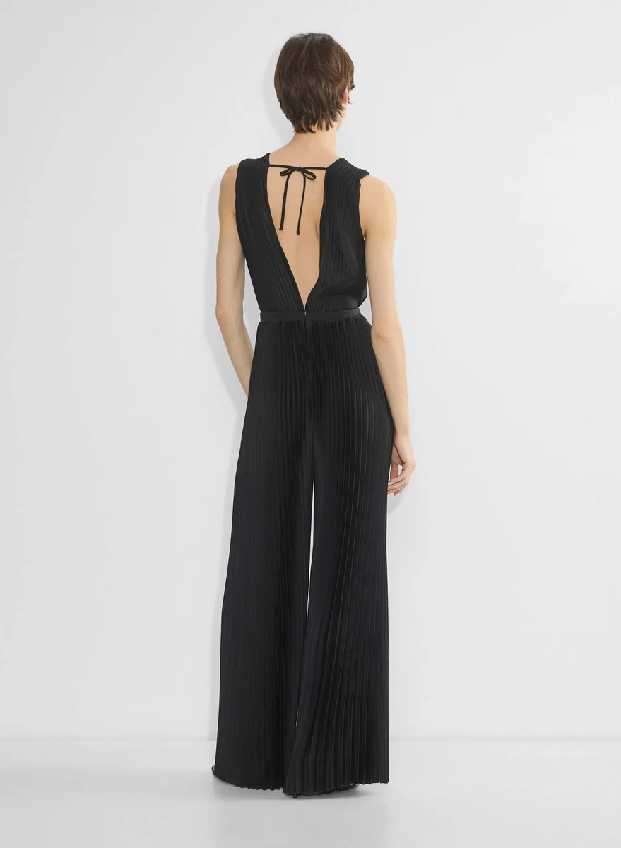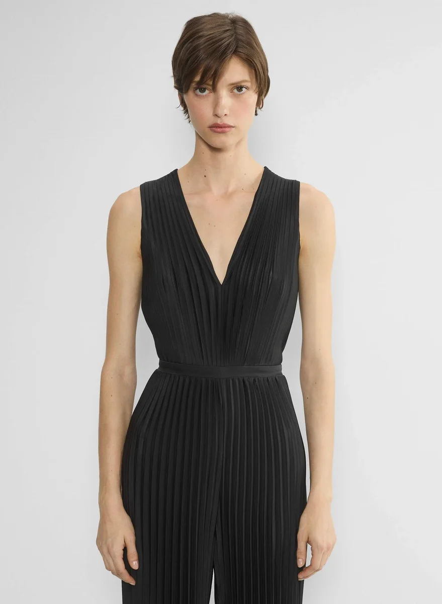 You like pleatsThis is a wide-leg jumpsuit with all-over pleats and a V neckline. It’s cut from drapey double-faced satin with a soft sheen and luxurious next-to-skin feel.