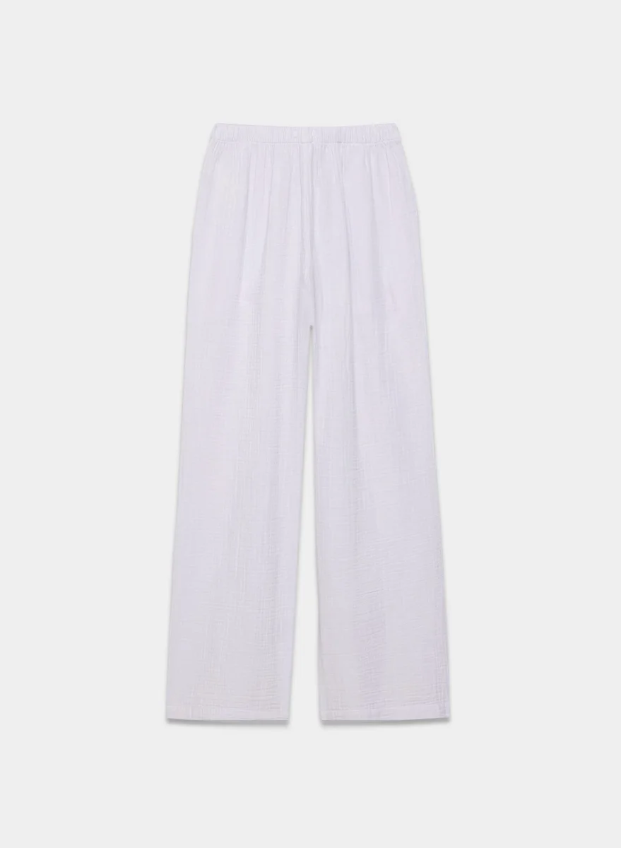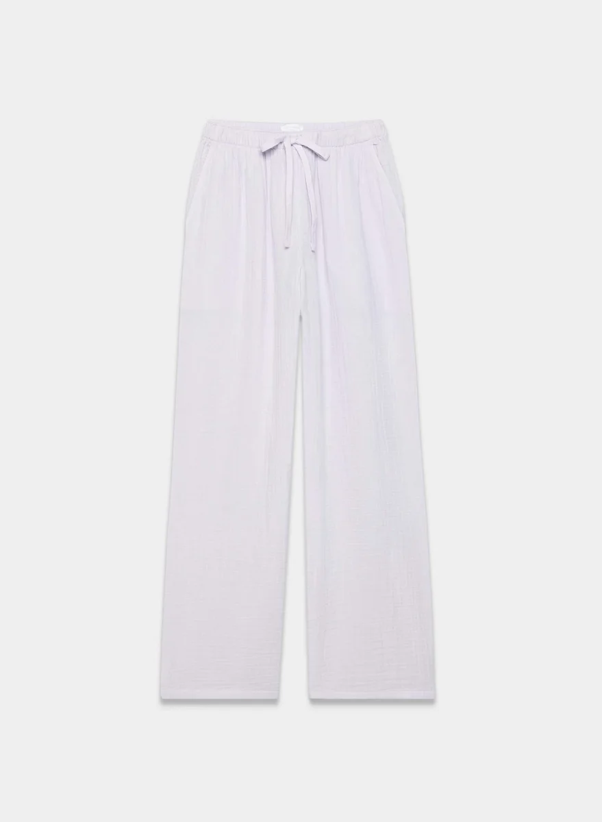 These are wide-leg pants with a relaxed fit, slash hand pockets and a drawcord waistband. They’re cut from AirPlush Cotton™ — easy-care 100% organic cotton that’s perfect for vacation. This double gauze fabric is made with two layers of soft cotton for an airy, plush feel.