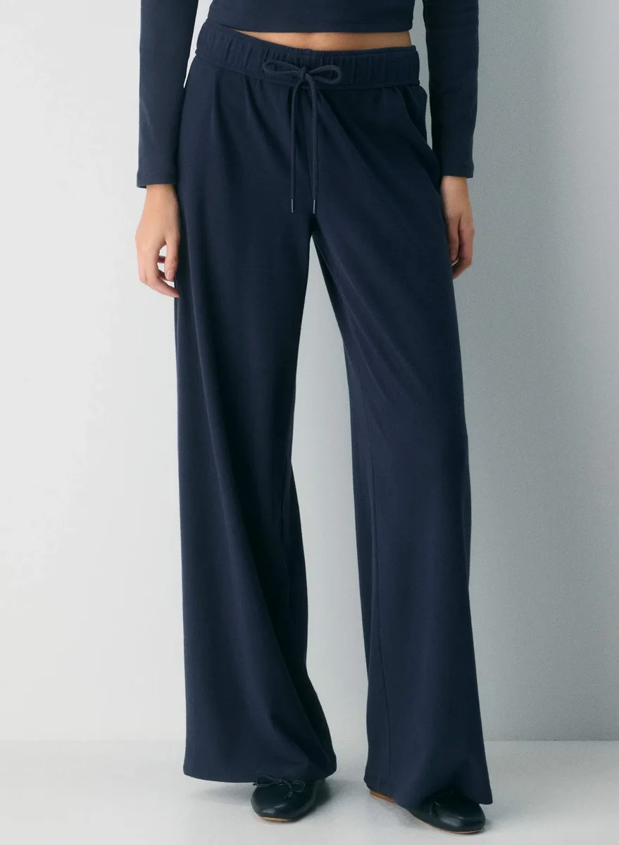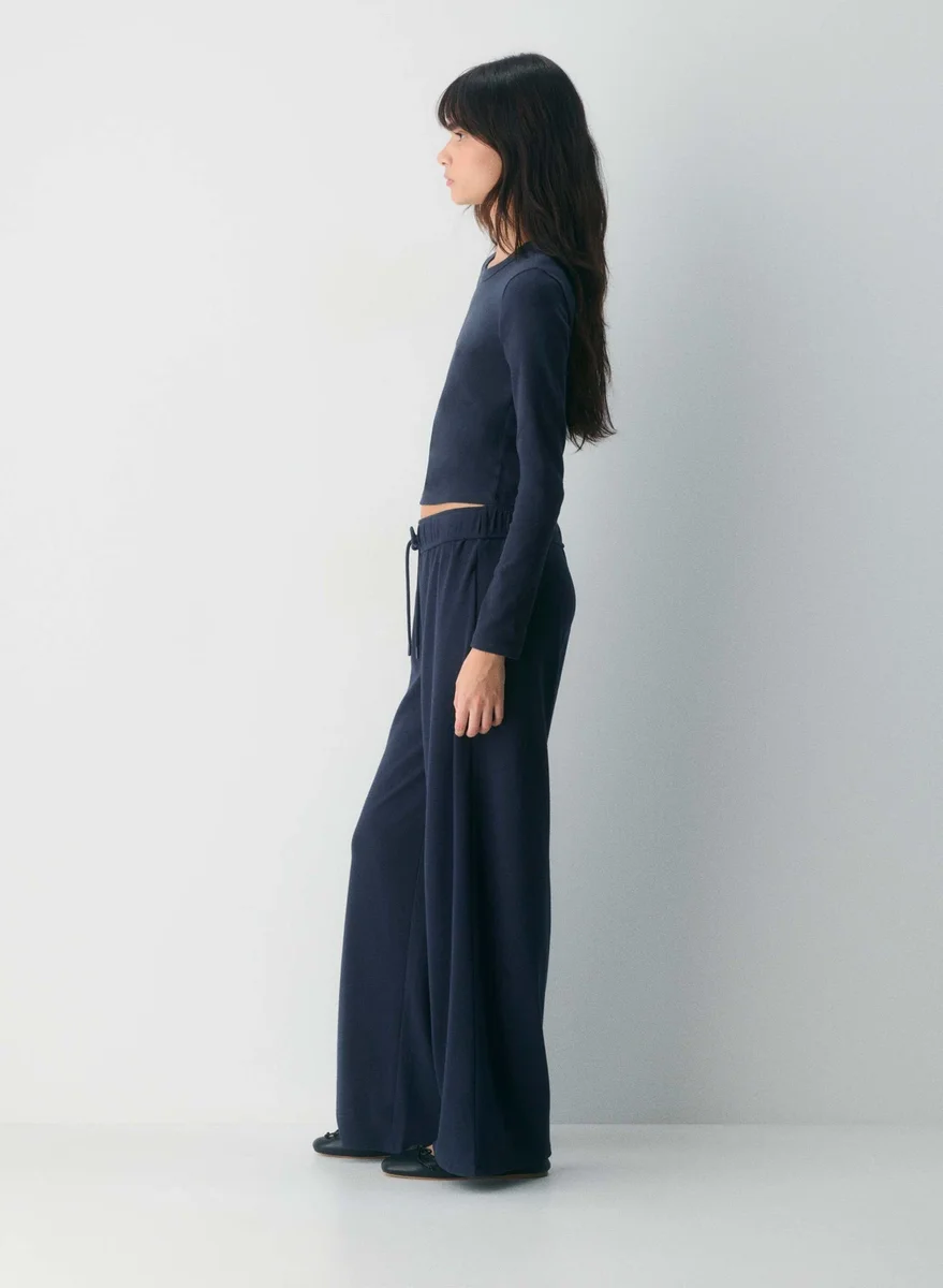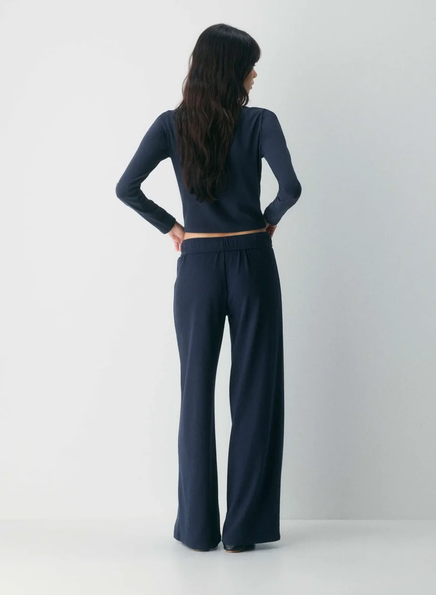 These are low-rise, pull-on pants with a wider leg and a relaxed fit. They’re made with BestHug™ — super fine-ribbed fabric that shapes to the body for a cozy, hug-like feel.