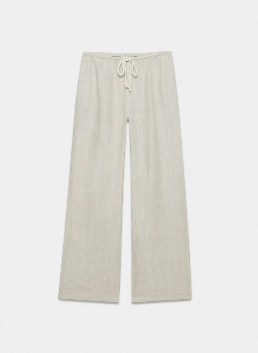 Wide-leg 100% linen pants