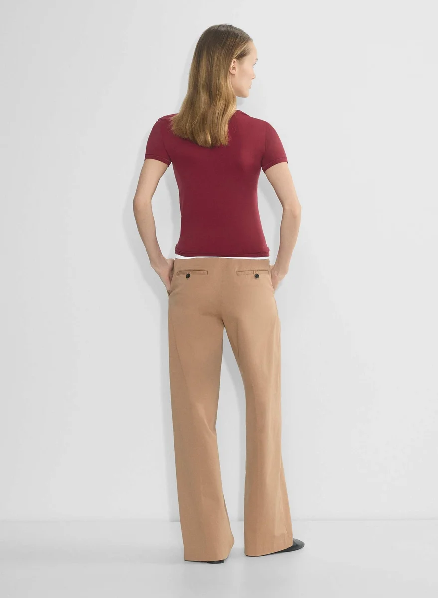 These are wide-leg pleated trousers with slash pockets and a relaxed fit. They’re made with Aritzia’s Chino — stretch cotton twill with a peachy feel. It’s easy-care and perfect for year-round wear. It’s made with 97% regenerative cotton.