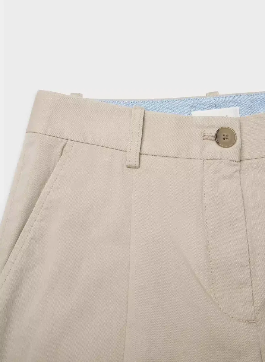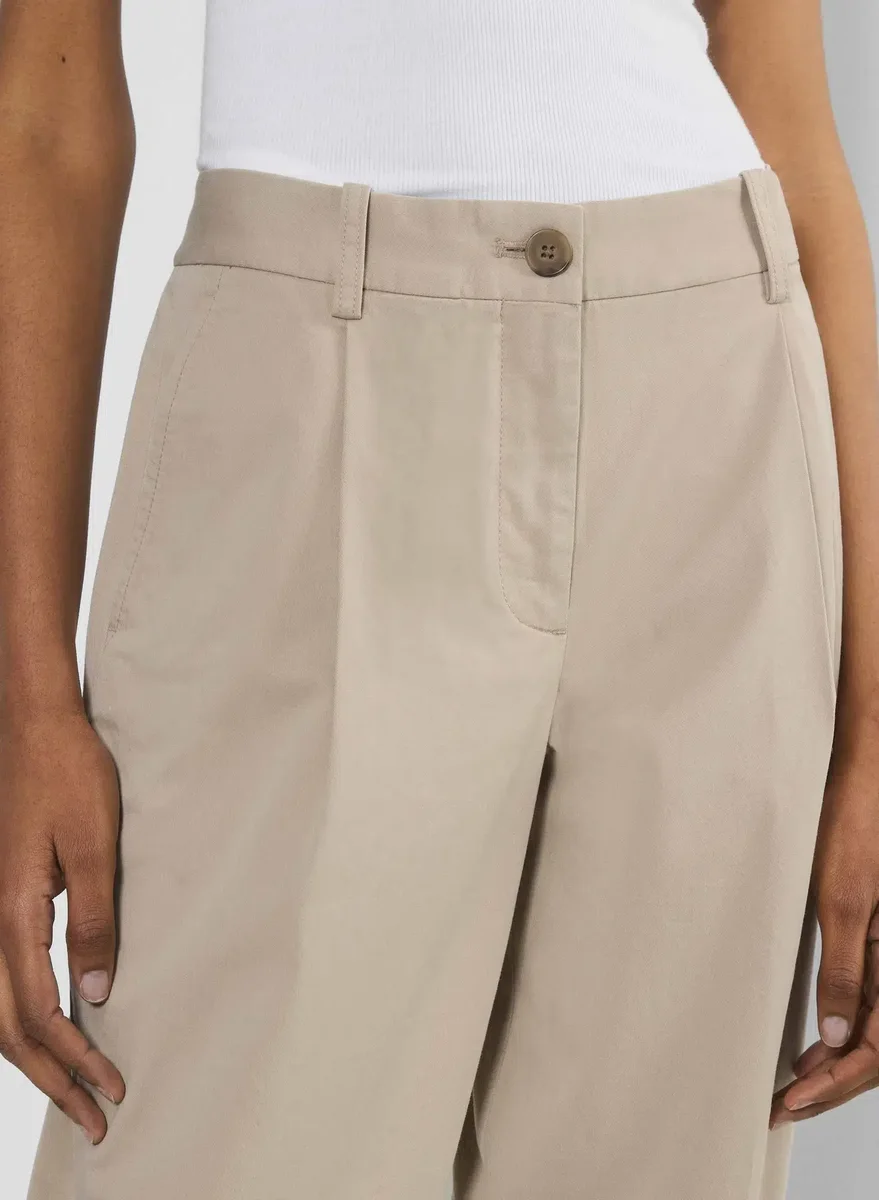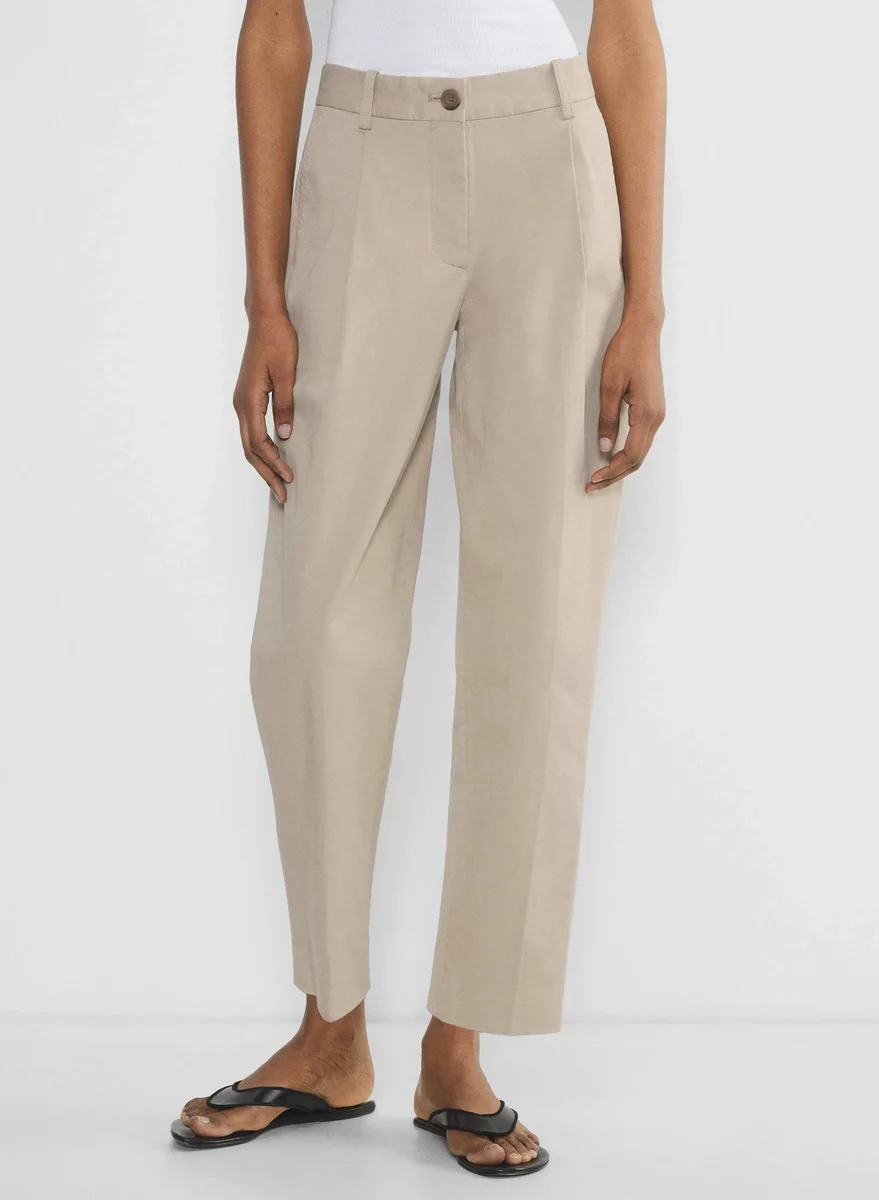 Now for the socks These are pleated mid-rise trousers with slash pockets and a relaxed fit. They’re made with Aritzia’s Chino — stretch cotton twill with a