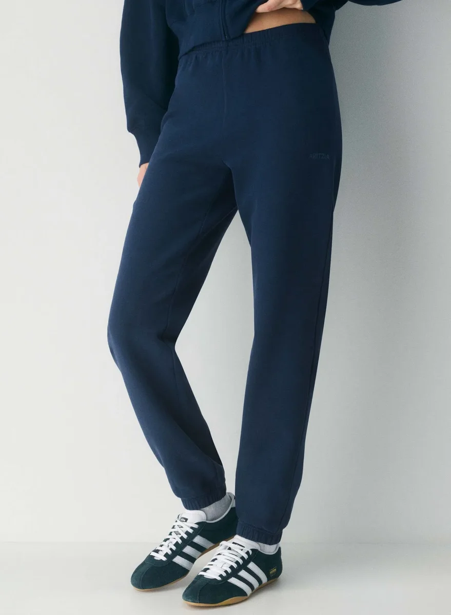 Brisk jog to the couchThese are high-rise joggers with a skinny leg and drawcord waistband. They’re made with Aritzia’s Cozy Sweatfleece — premium midweight fleece famous for its soft-brushed back, sueded face and cloud-nine plush feel. This version has added stretch to achieve a snug, comfortable fit. The best kind of cozy.