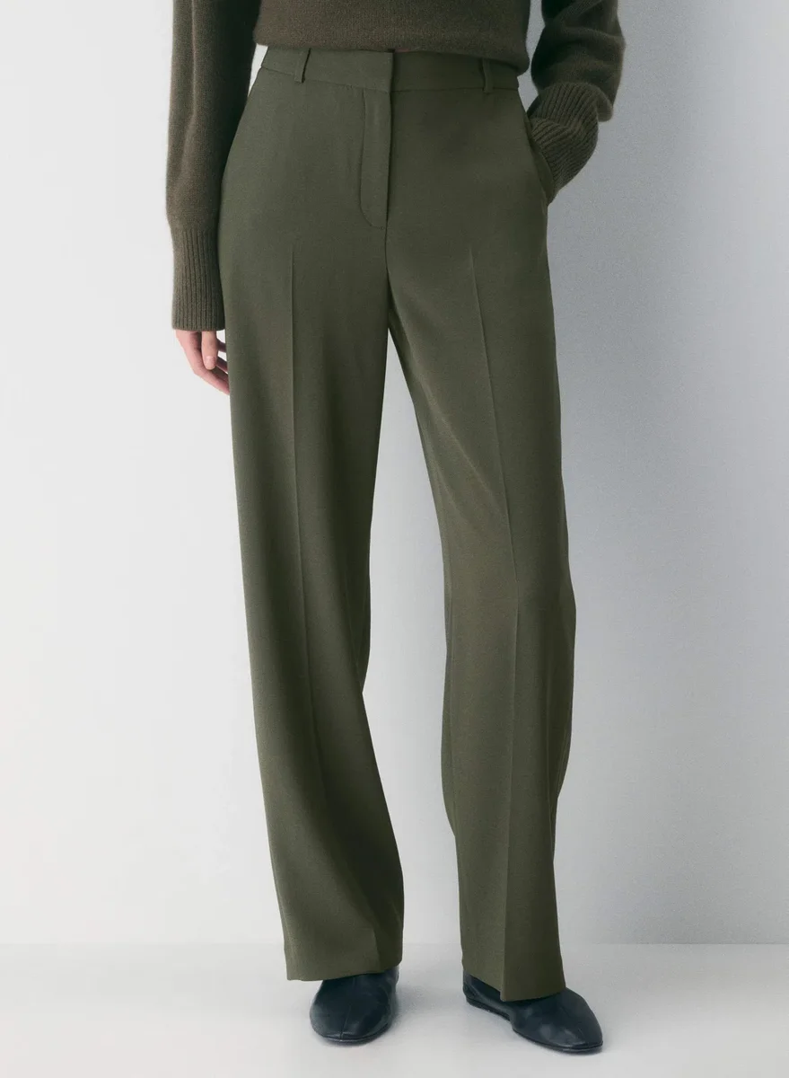 These pants are overachieversGet that custom-tailored look without the hassle. These are classic-fit pants with a high rise, flat front and darted back for shaping. They’re finely tailored with Mirror Crepe™ — essential crepe fabric with a soft drape and silky satin back. It’s sourced from an innovative Japanese mill and made with 82% triacetate, wood-based fibres from responsibly managed forests with a focus on protecting ecosystems. This new version has been recently updated with an elastic back waist for equal parts polish and comfort.