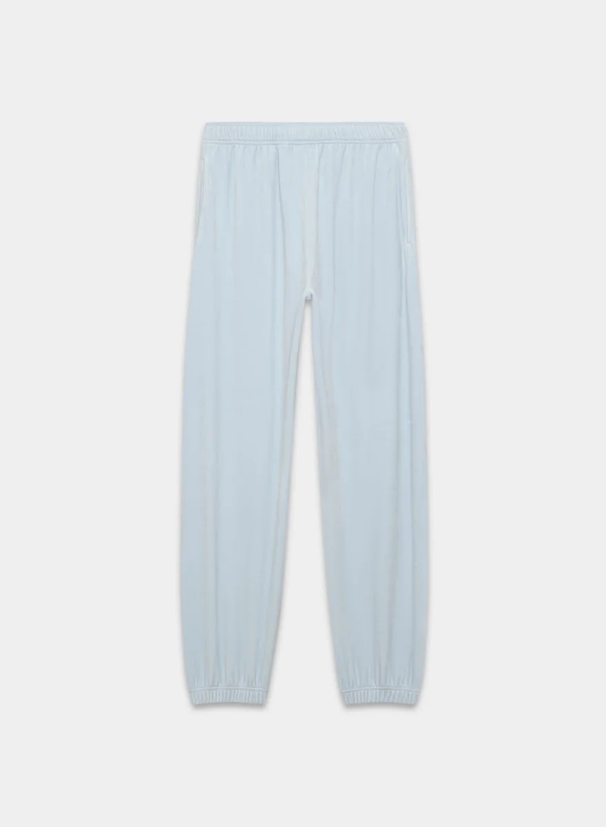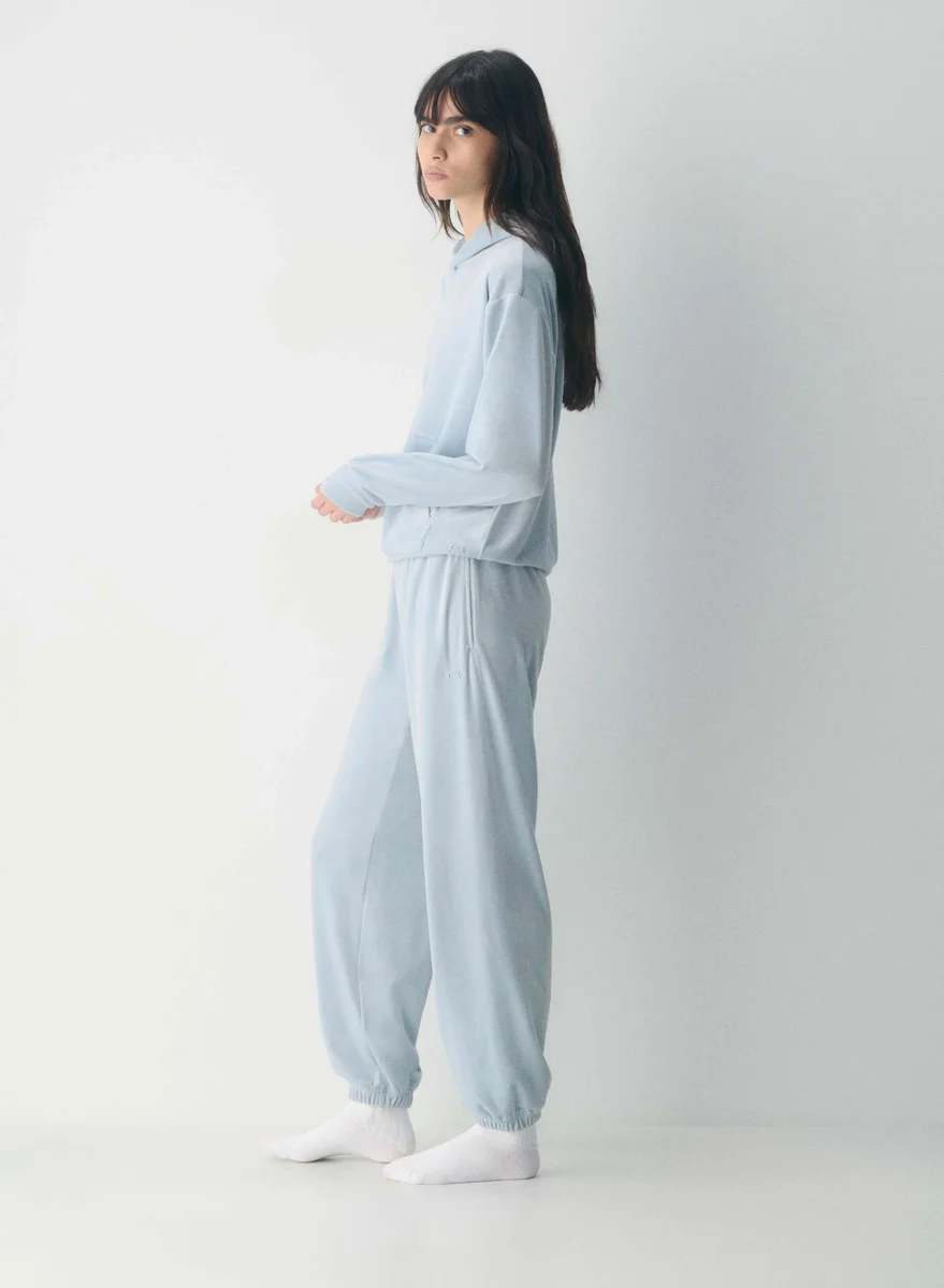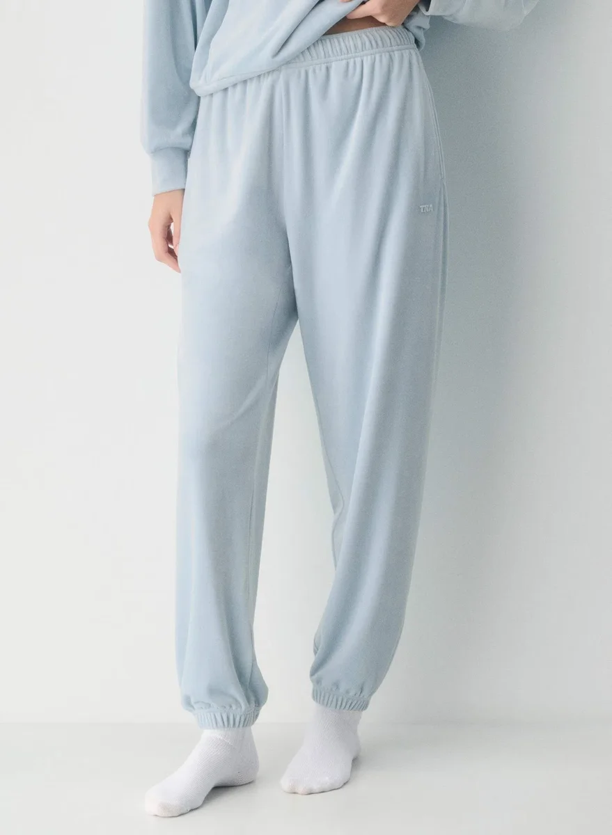 These are high-rise joggers with a relaxed fit. They’re made from velour with a soft, textural and cozy feel.