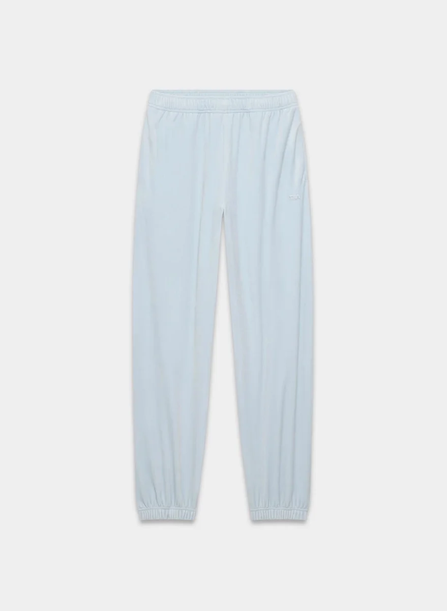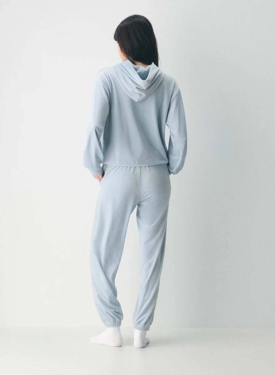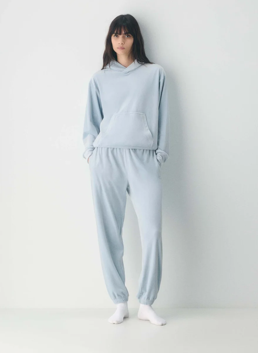 These are high-rise joggers with a relaxed fit. They’re made from velour with a soft, textural and cozy feel.