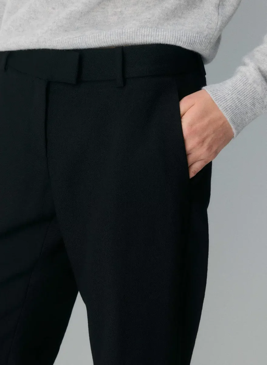 Low-rise, straight-leg virgin wool pants