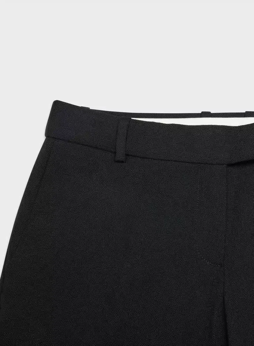 These are low-rise, straight-leg pants with front slash pockets, a classic fit and a darted back waist for shaping. They’re expertly tailored with 100% virgin wool twill that is softly structured and responsibly sourced. This fabric is from a premier Italian mill.