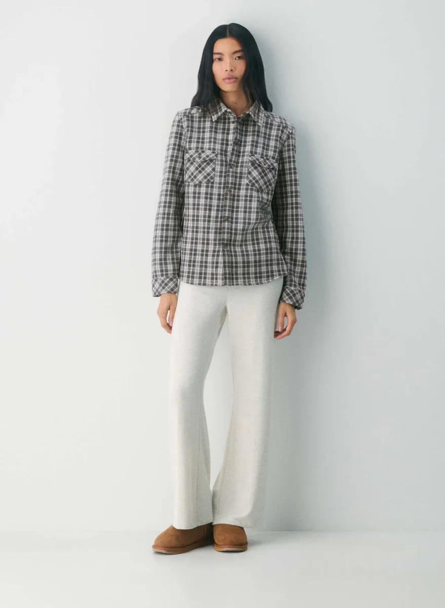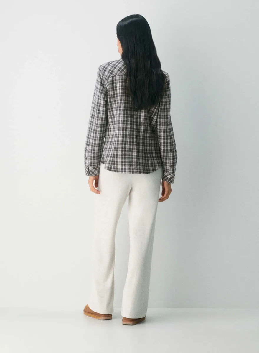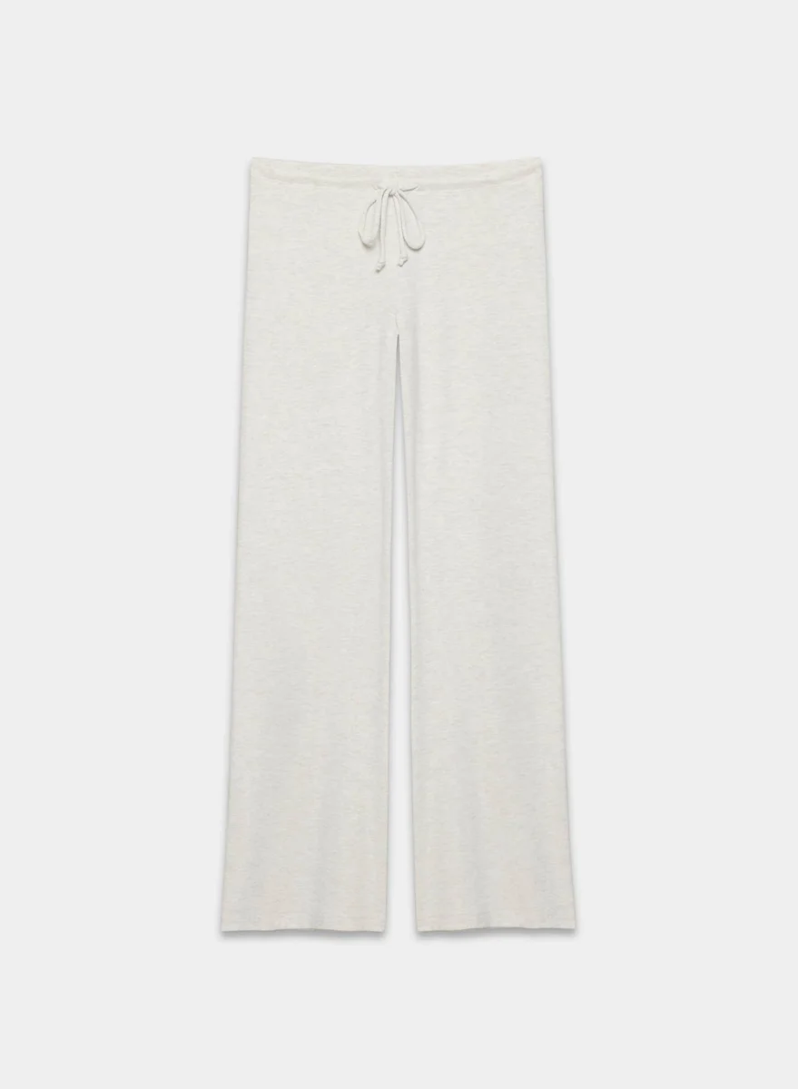These are ultra low-rise flared pants with a classic fit. They’re made with drapey, cozy-brushed jersey with a laid-back look.
