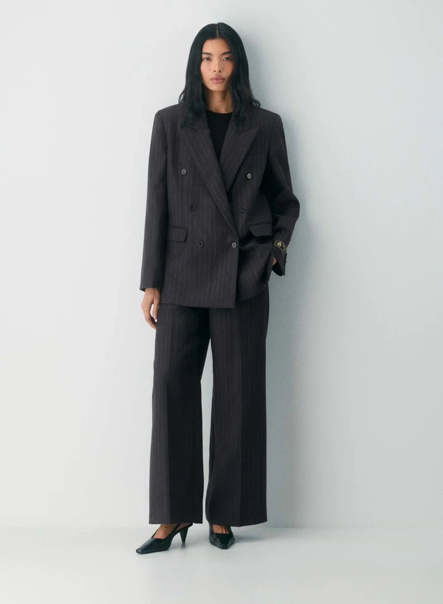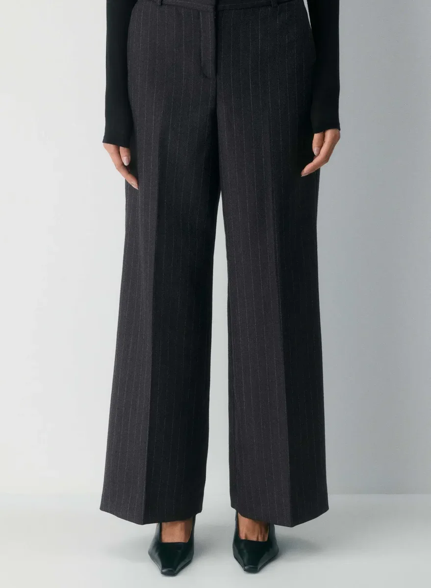 These are mid-rise flat-front pants with a wider leg, relaxed fit and darted back waist for shaping. They’re expertly tailored from 100% virgin wool twill that is softly structured and responsibly sourced. This fabric is from a premier Italian mill.