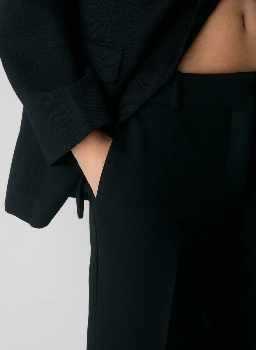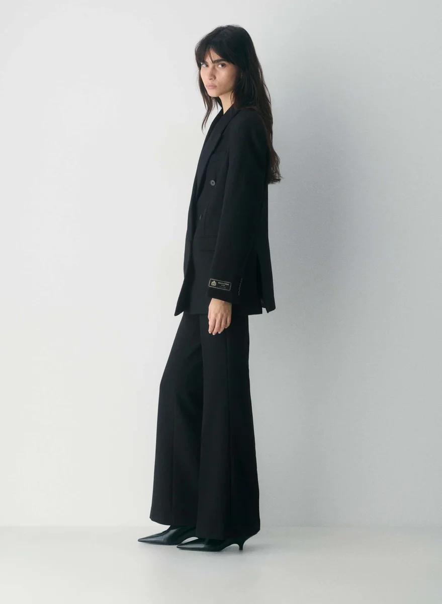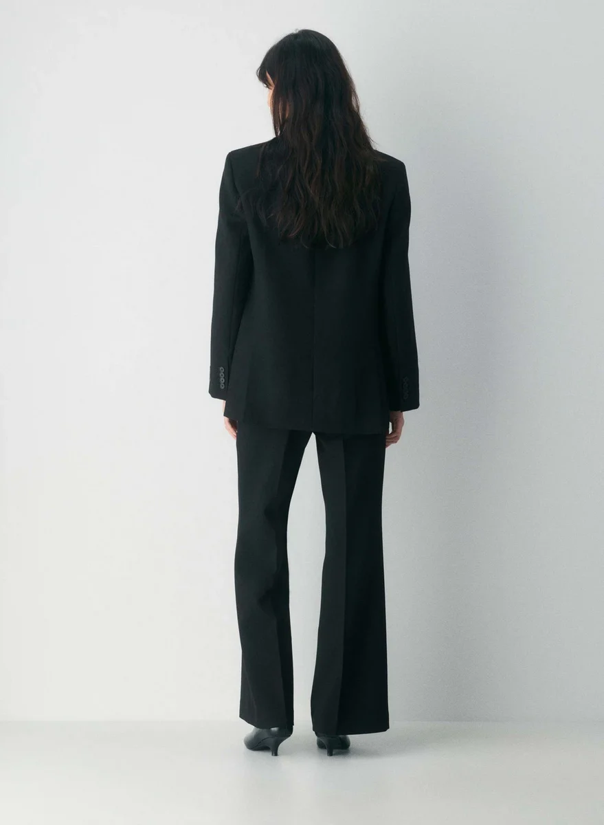 These are mid-rise pants with a classic fit, flared leg and darted back waist for shaping. They’re finely tailored with (Re)ssential — softly structured stretch fabric that holds its form while you move easy. This fabric is sourced from a premier Portuguese mill and made with 54% recycled polyester and 26% LENZING™ ECOVERO™ Viscose.