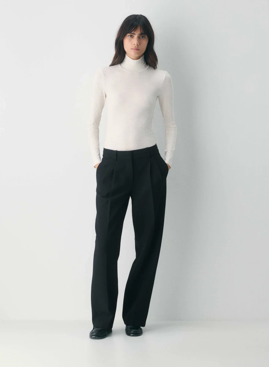 Softly structured low-rise, wide-leg relaxed pleated trousers