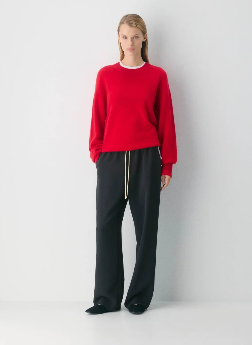 These are mid-rise pull-on pants with a relaxed fit, a cinchable drawcord waistband and slash front pockets. They’re made from Crepette™ — our one-of-a-kind Japanese crepe fabric beloved for its subtle texture, breezy drape and the fact that it basically never wrinkles. This version features a contrast stripe detail.