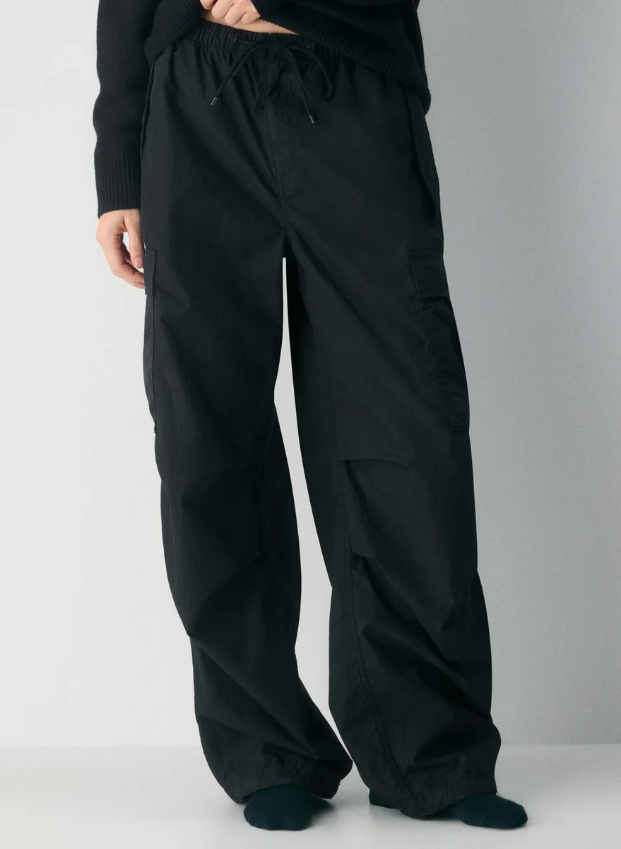 Your next big adventure? These pants.These are oversized parachute pants with cargo pockets and adjustable drawcords for a customizable fit. They’re made with