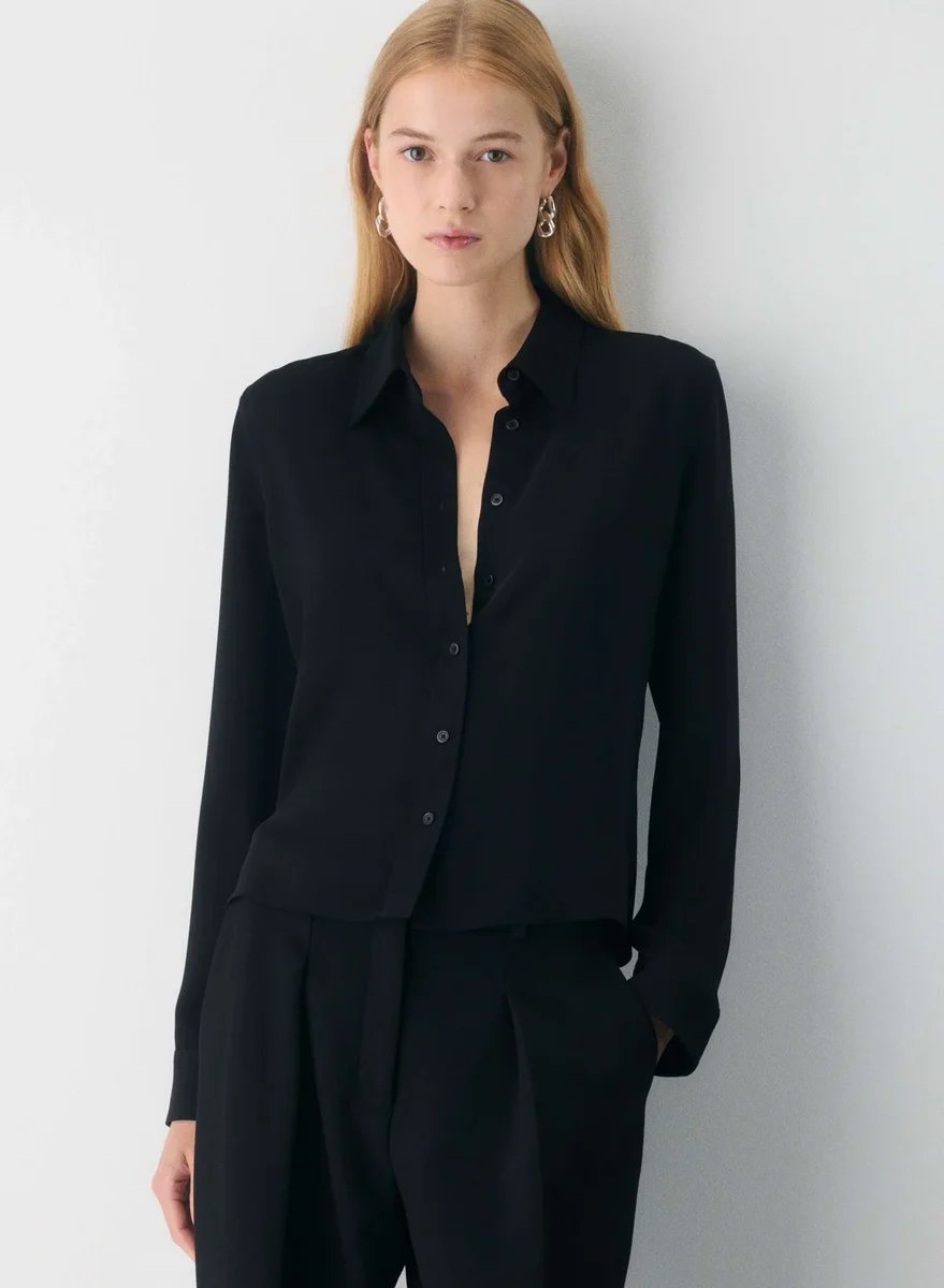 Matte satin button-up shirt