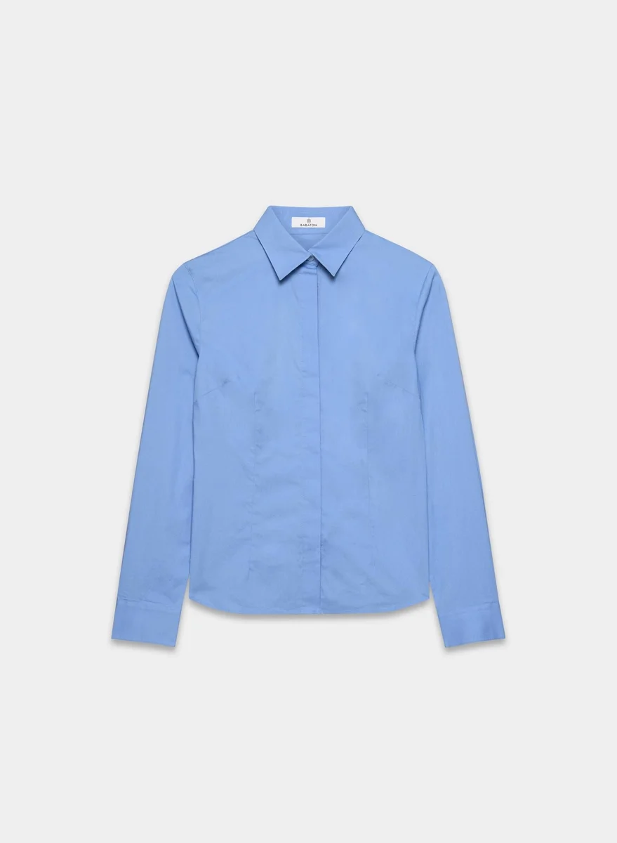 One for the booksThis is a button-up shirt with a slim fit. It’s made from stretchy breathable cotton poplin with a crisp, airy feel that’s smooth to the touch.