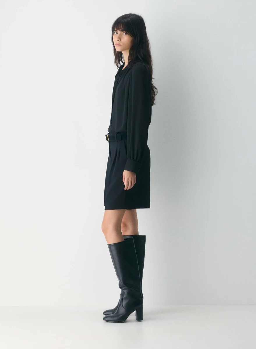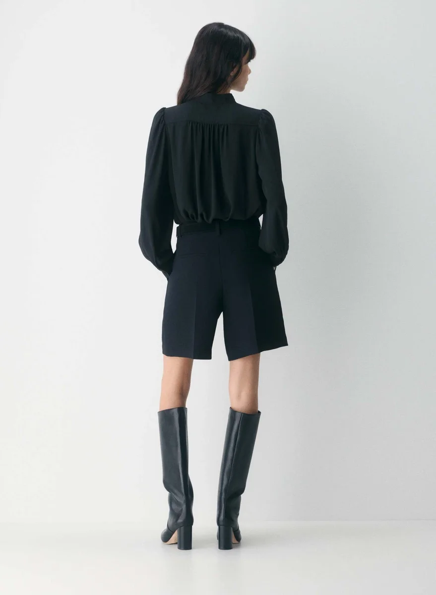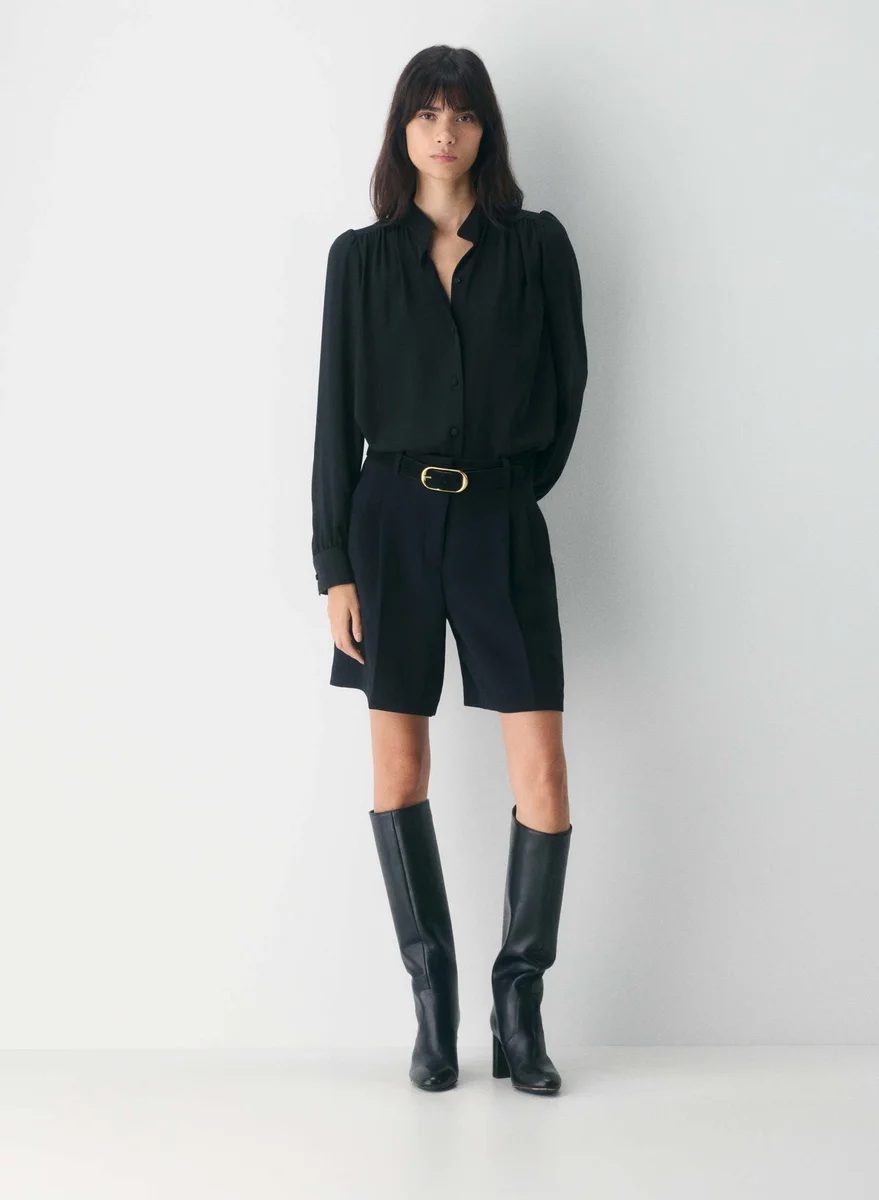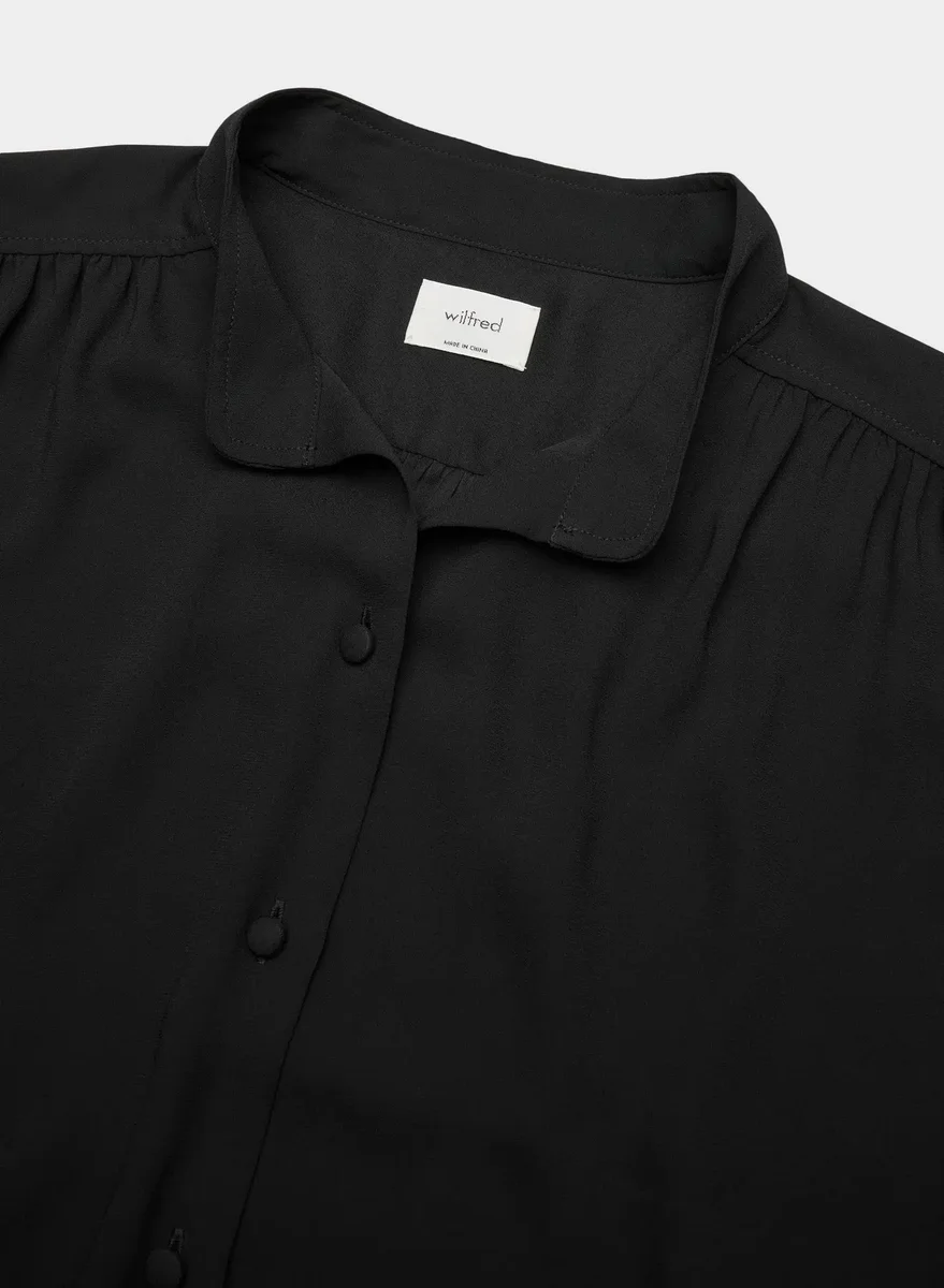 Femme de la femme This is a button-up blouse with a collared neckline and relaxed fit. It’s crafted from a smooth satin-back crepe with a soft drape and luxurious next-to-skin feel. This fabric is made with 100% recycled polyester and sourced from an innovative Japanese mill.