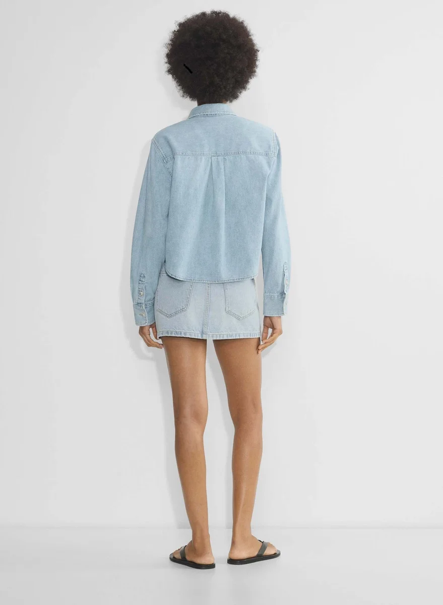 Cropped denim button-up