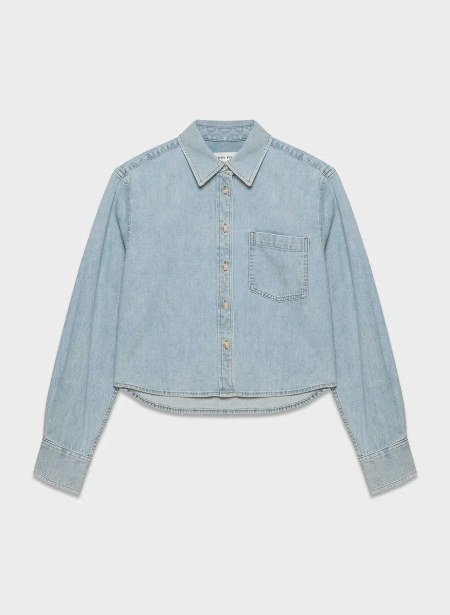 The relaxed denim button-up — croppedInspired by the infamous decade, The ’80s Comfy is Denim Forum’s signature relaxed denim shirt — but cropped to hit at the waist. It has classic details like button-closure cuffs, a patch pocket and a rounded hem. It’s made with lightweight, drapey non-stretch regenerative cotton denim with a soft feel. This version comes in a light indigo wash.