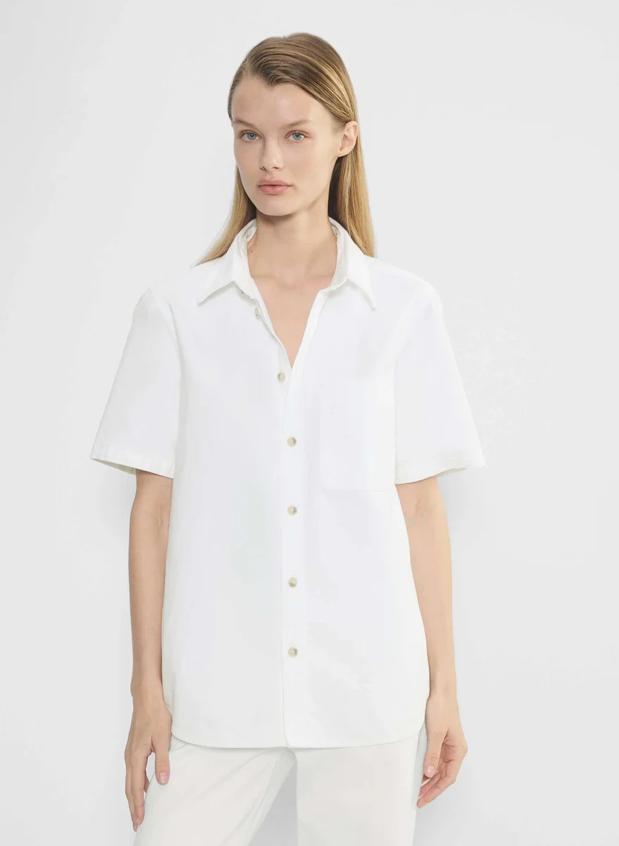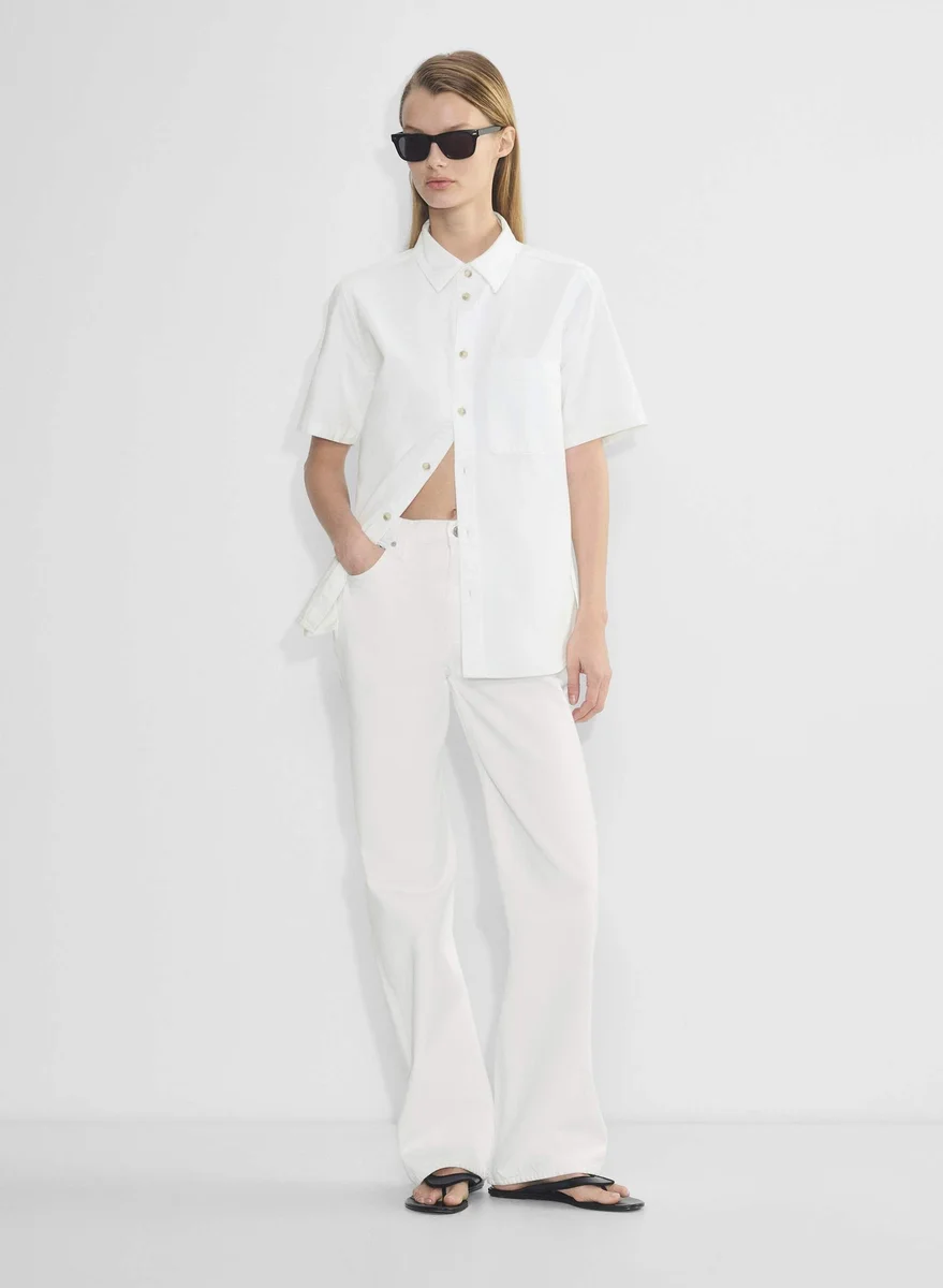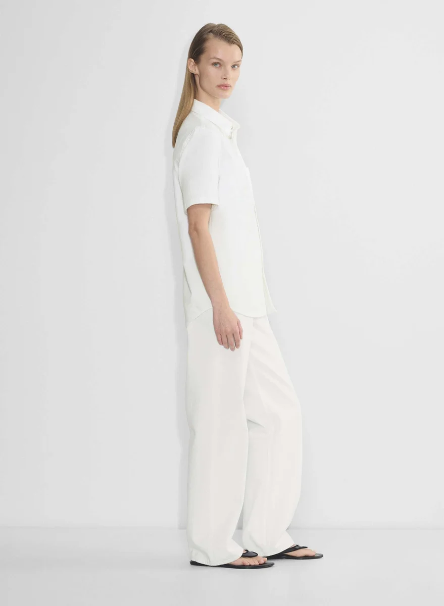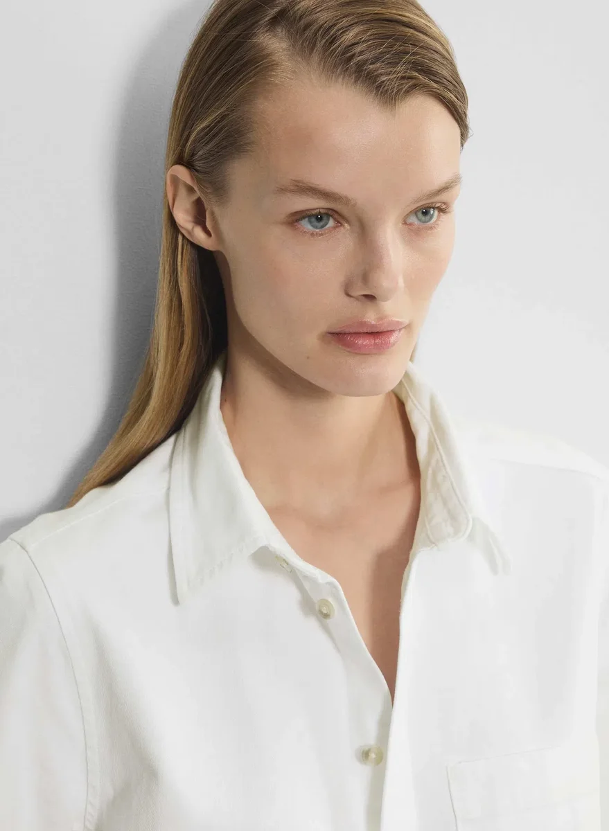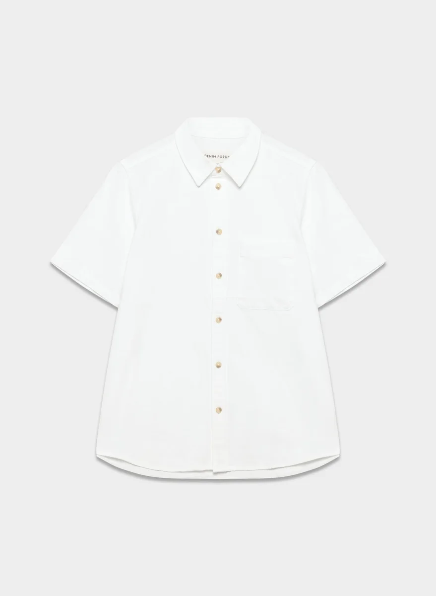 Classic with a touch of prepInspired by the perfect ’90s vintage find, this is a shortsleeve button-up shirt with a patch pocket and a rounded hem. It’s cut from lightweight and drapey non-stretch denim with a soft feel. This version comes in a washed white with a clean hem.