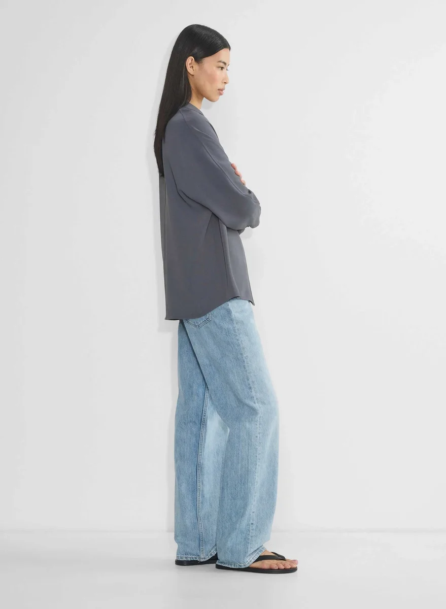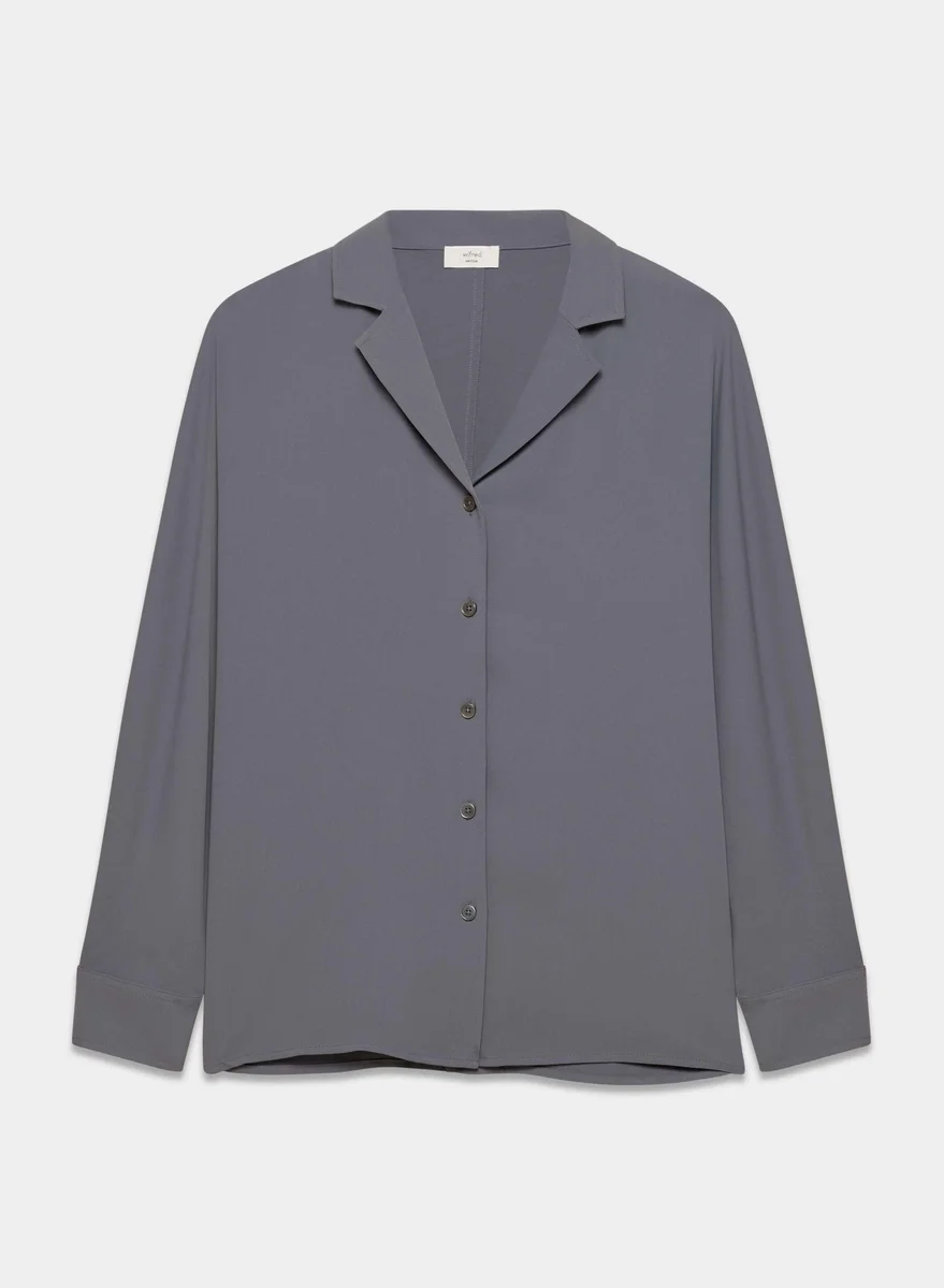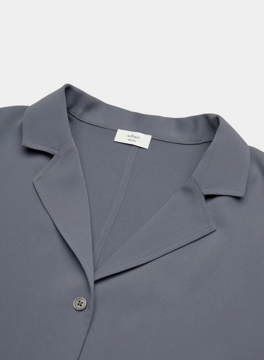 A shirt with no rulesThis is a relaxed button-up shirt with dolman sleeves and a notched collar. It’s made with Studio Drape — drapey matte satin with a smooth look and lightweight feel. This fabric is made with 50% recycled polyester.