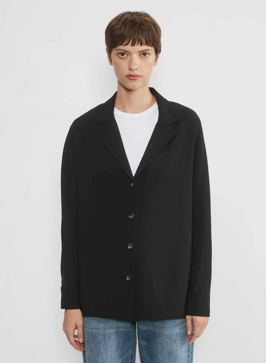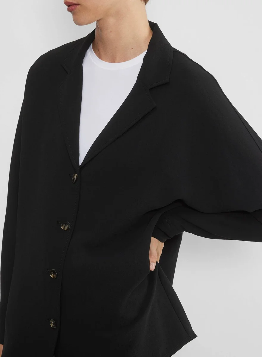This is a relaxed button-up shirt with dolman sleeves and a notched collar. It’s made with Crepette™ — our one-of-a-kind Japanese crepe fabric beloved for its subtle texture, breezy drape and the fact that it basically never wrinkles.