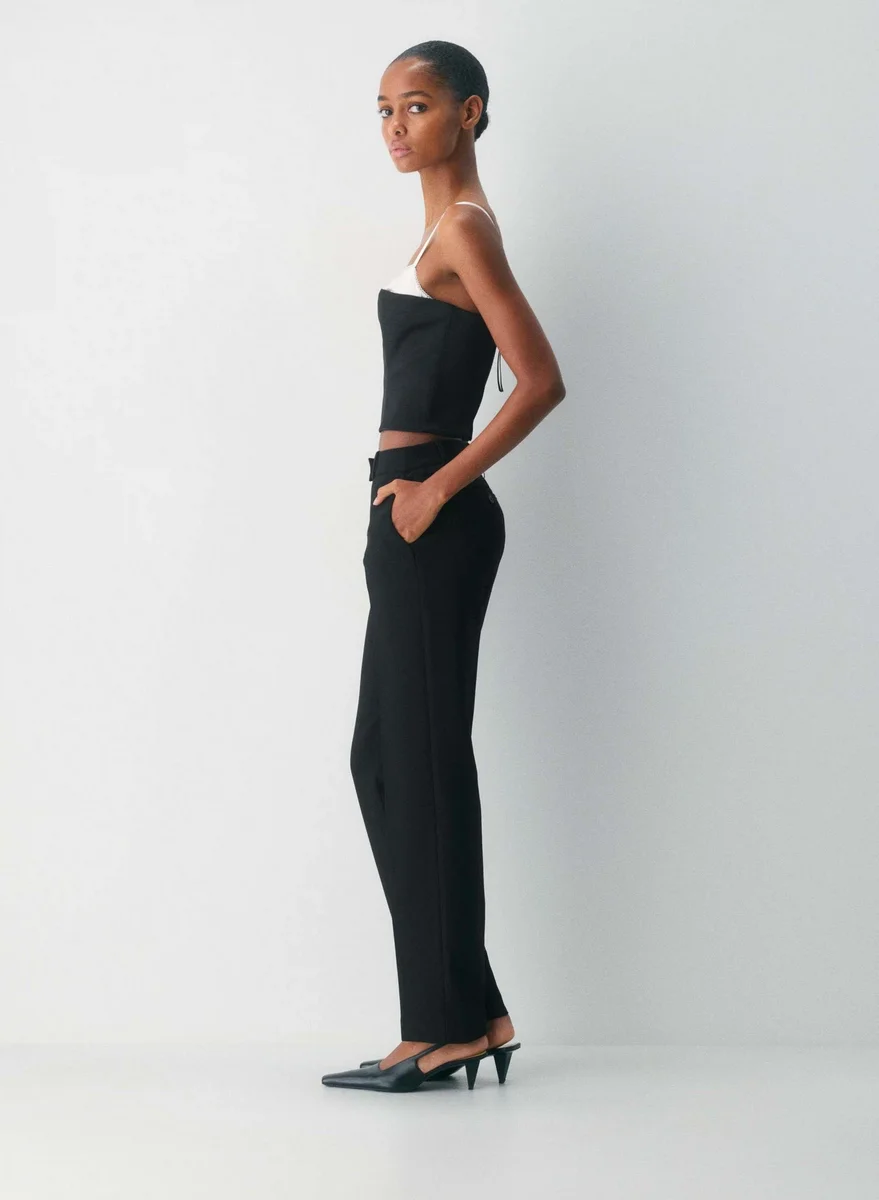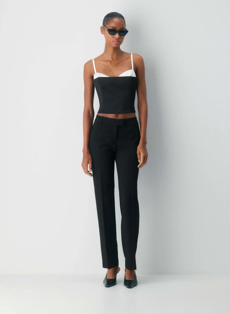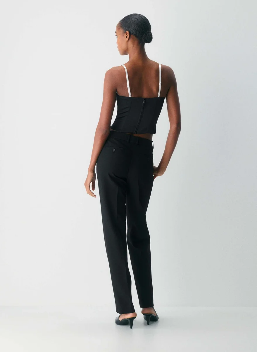 This is a bustier top with adjustable straps and princess seams for shaping. It’s crafted from a soft-sheen satin with a smooth feel and stretch for all-day comfort. This fabric is made with 65% recycled polyester.